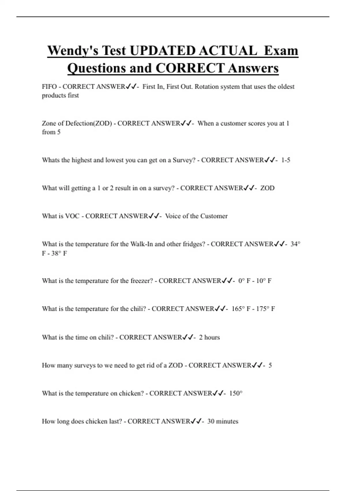 Wendy's Bundled Exam Questions and CORRECT Answers