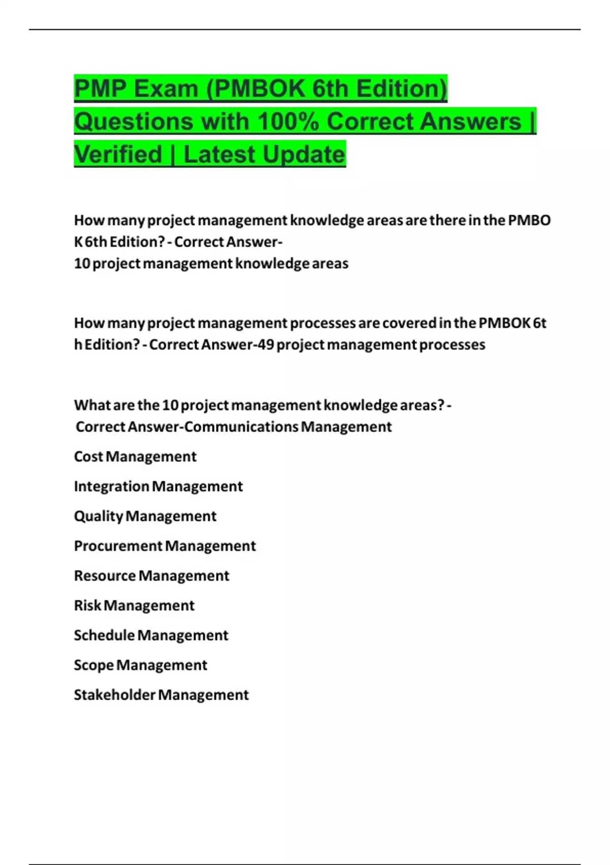 Test Bank For PMI (PMP) Exam 6th Edition PMBOK Questions With 100% Correct Answers | Verified | Latest Update PMBOK Guide 6th Edition Exam Questions with 100% Correct Answers | Verified | Latest Update PMP Exam Practice- Questions with 100% Correct Answers | Latest Version (2024/2025) Expert Verified PMP Exam Prep Questions with 100% Correct Answer