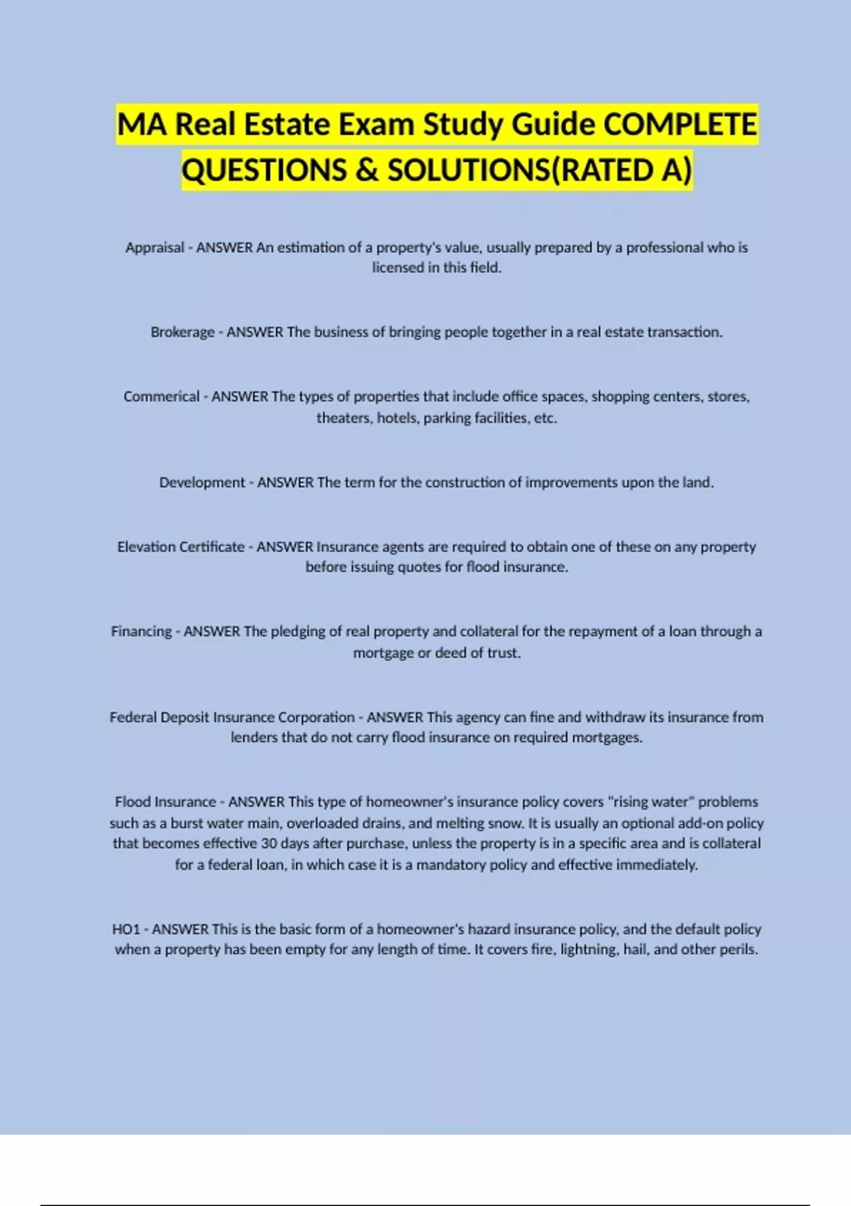 Massachusetts Real Estate Exam CORRECT QUESTIONS & ANSWERS|| 2024 LATEST UPDATE|| VERIFIED EXAM BUNDLEMassachusetts Real Estate Exam CORRECT QUESTIONS & ANSWERS|| 2024 LATEST UPDATE|| VERIFIED EXAM BUNDLEMassachusetts Real Estate Exam CORRECT QUESTIONS & ANSWERS|| 2024 LATEST UPDATE|| VERIFIED EXAM BUNDLEMassachusetts Real Estate Exam CORRECT QUEST