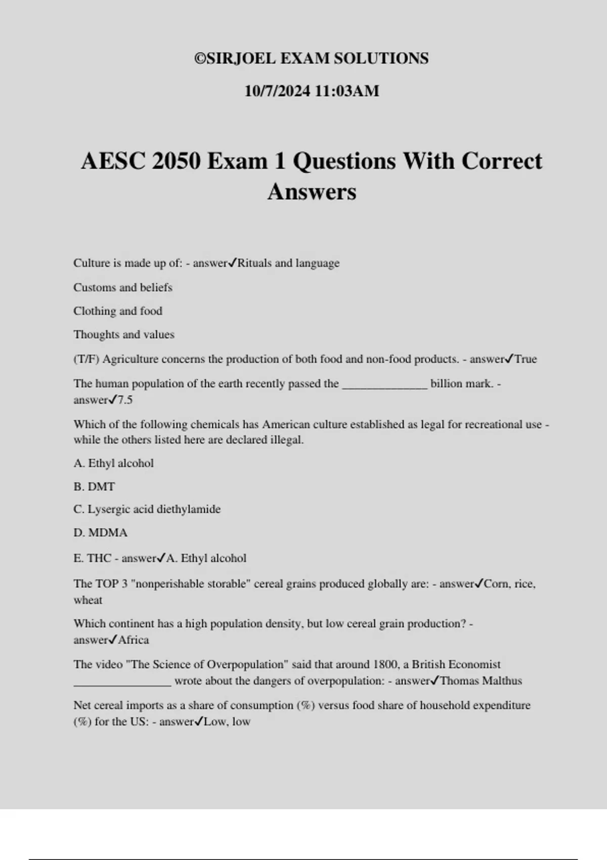 AESC 2050 Final Exam Questions With Correct Answers