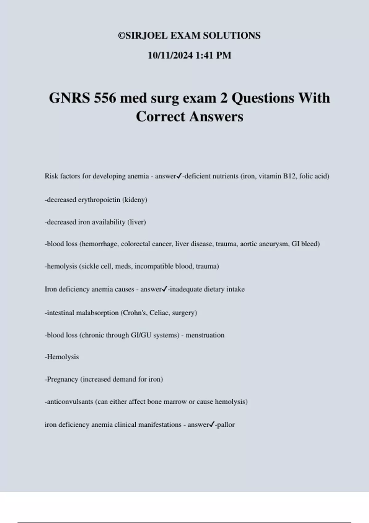 GNRS 556 med surg exam 2 Questions With Correct Answers