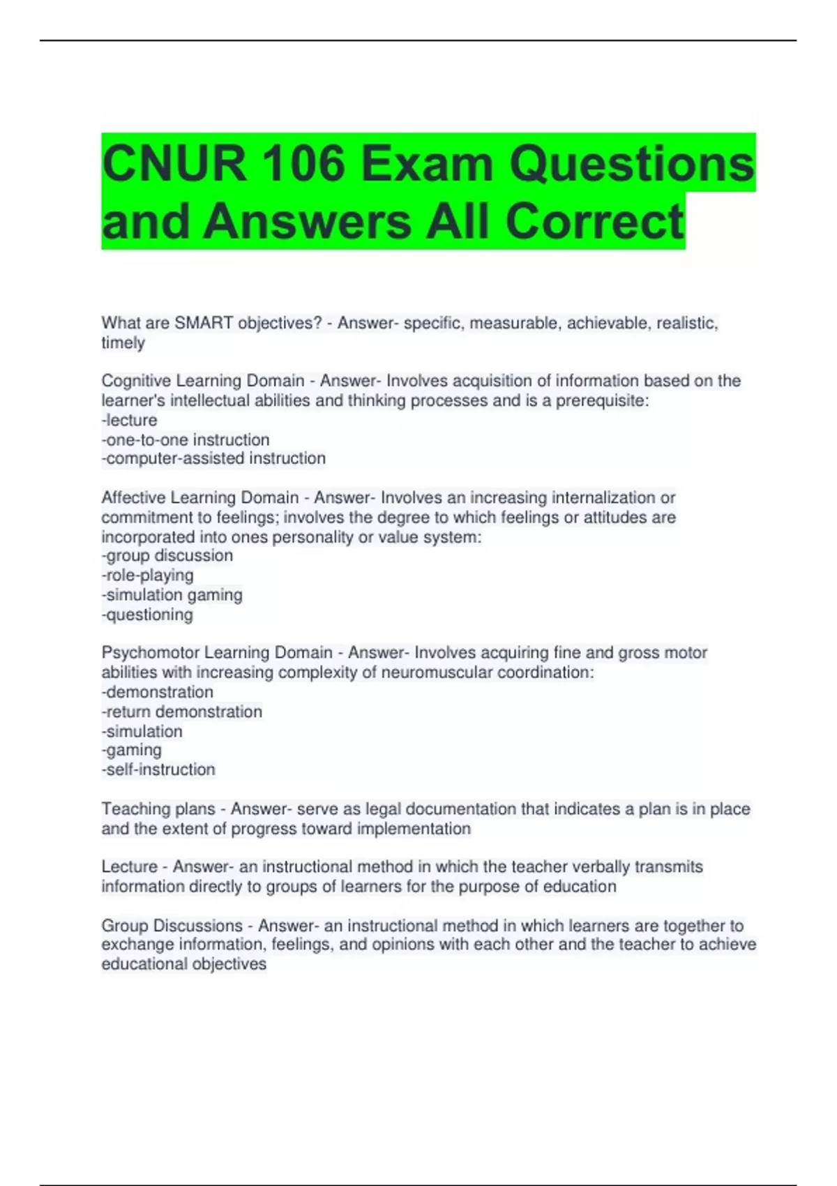 CNUR 106 Exam Questions and Answers All Correct 2 Exam (elaborations) CNUR 106 EXAM QUESTIONS AND CORRECT ANSWERS (A GRADE) 3 Exam (elaborations) CNUR 106 FINAL EXAM QUESTIONS AND CORRECT ANSWERS (VERIFIED ANSWERS) 4 Exam (elaborations) CNUR 106 FINAL TEST QUESTIONS WITH CORRECT ANSWERS 5 Exam (elaborations) CNUR 106 LATEST EXAM QUEST