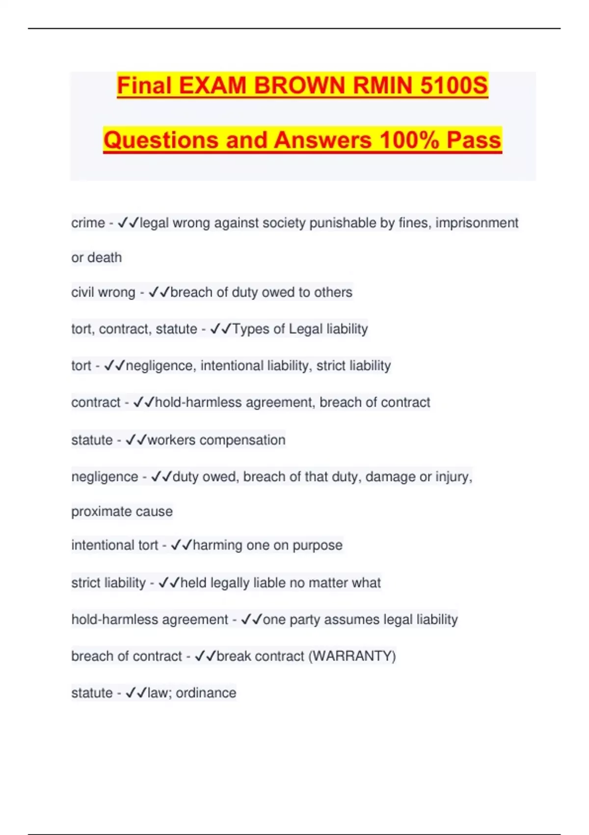 Final EXAM BROWN RMIN 5100S Questions and Answers 100% Pass