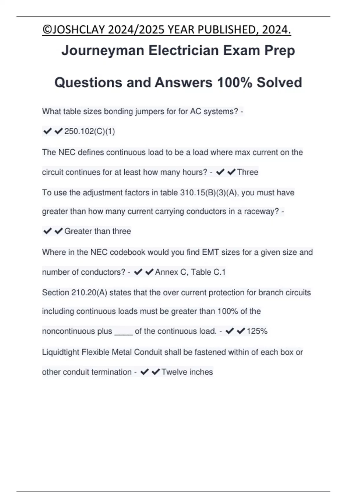 Journeyman Electrician Exam Questions and Answers 100% Solved | Graded A+