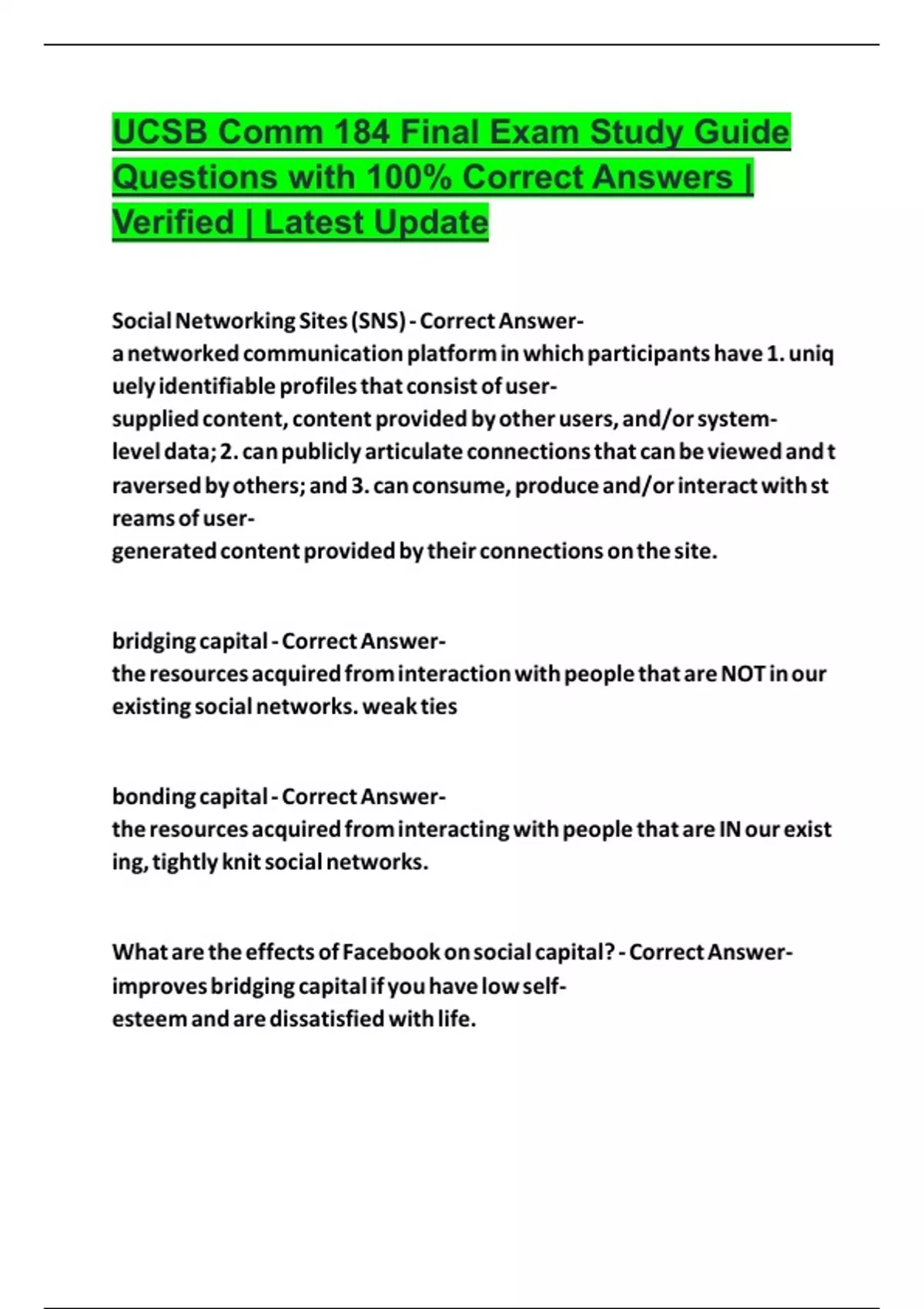 Package deal for UCSB Comm 184 Final Exam Study Guide Questions with 100% Correct Answers | Verified | Latest Update