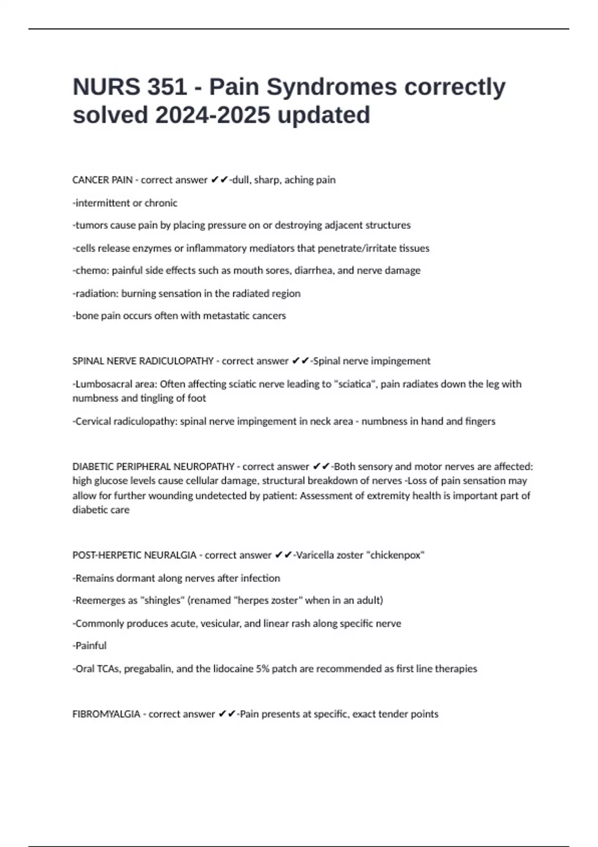 Pathophysiology - NURS 351A Objectives Exam 4 (Final)FULLY SOLVED