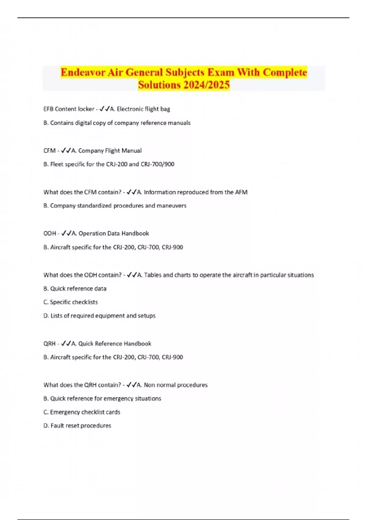 Package deal::: Endeavor CRJ900/700 Exams Compilation