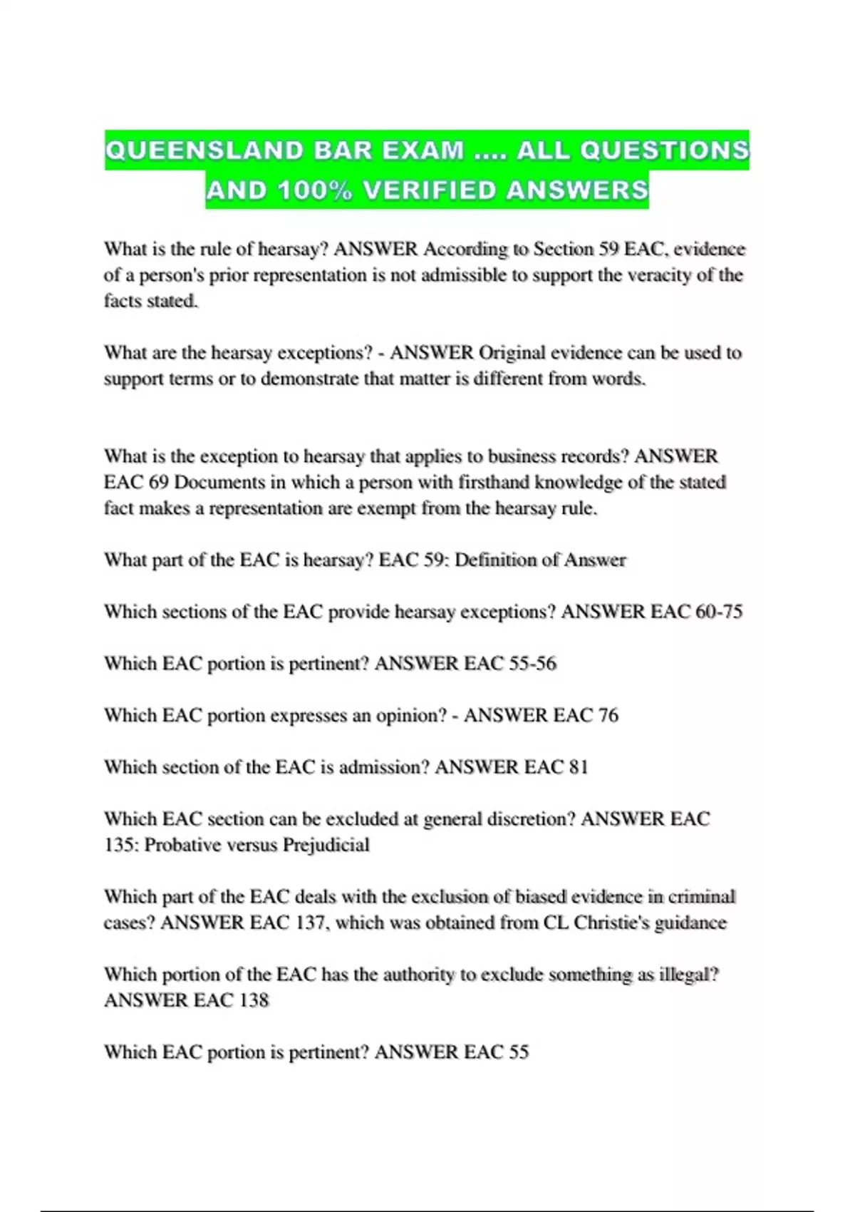 QUEENSLAND BAR EXAM …. ALL QUESTIONS AND 100% VERIFIED ANSWERS