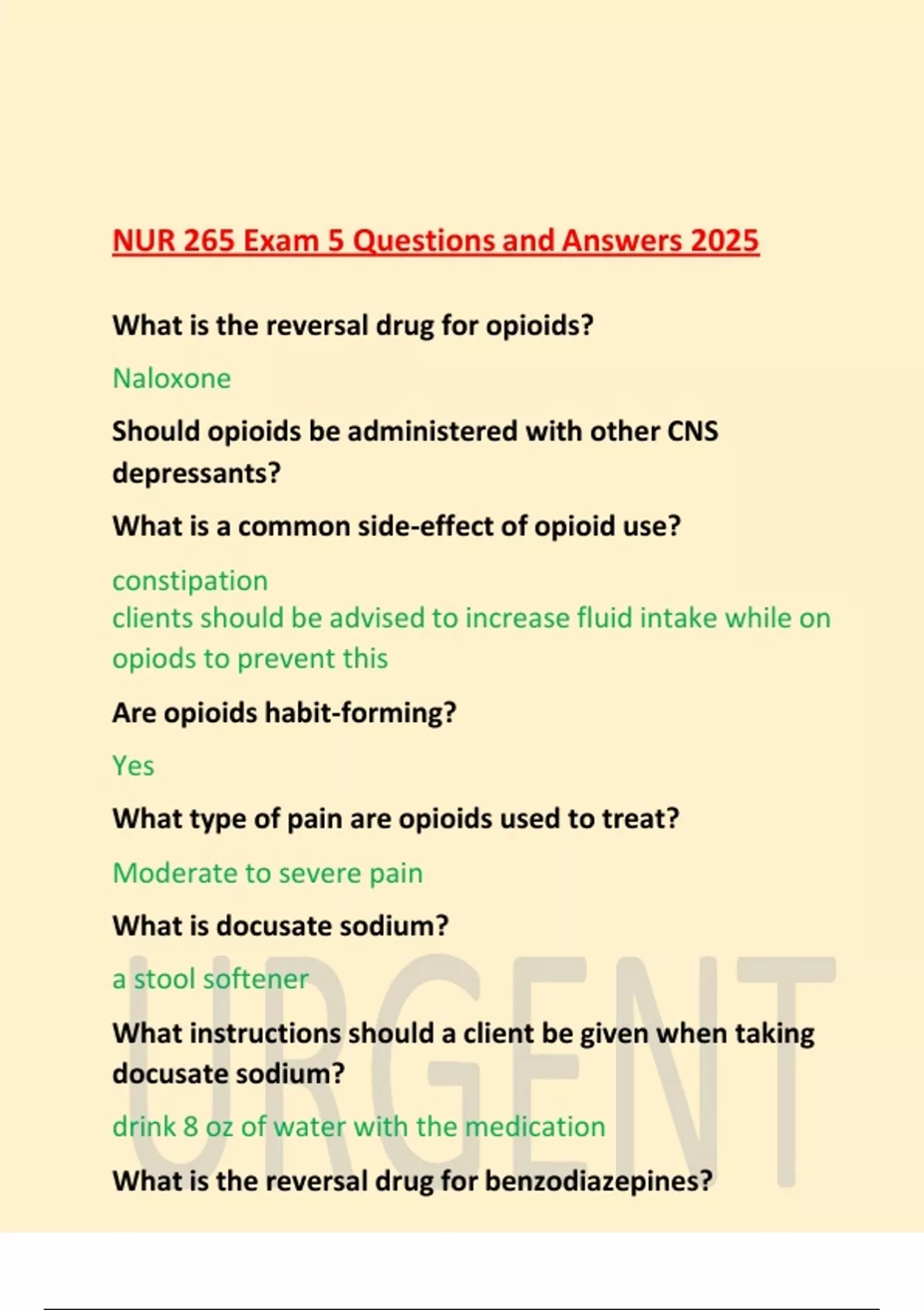 NUR 265 EXAM QUESTIONS AND CORRECT ANSWERS.