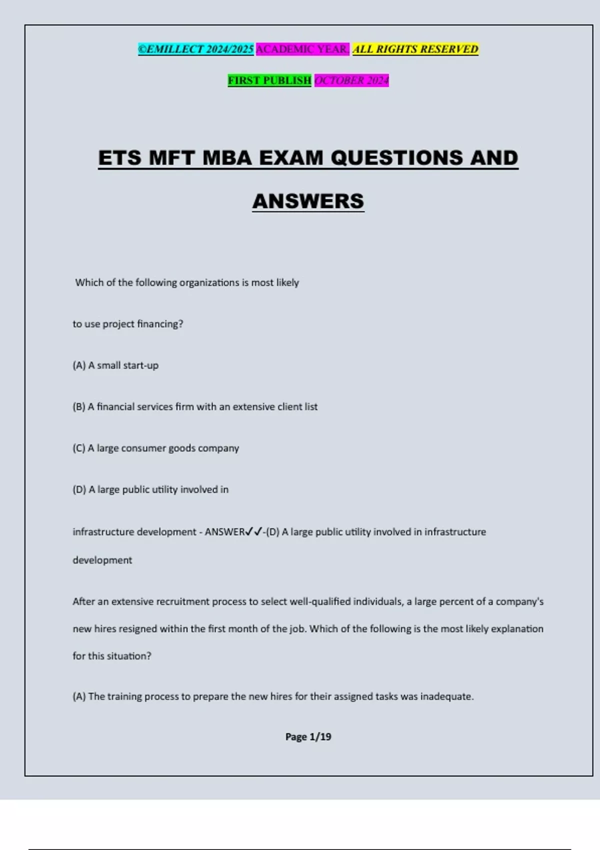 ETS MFT MBA EXAM QUESTIONS AND ANSWERS