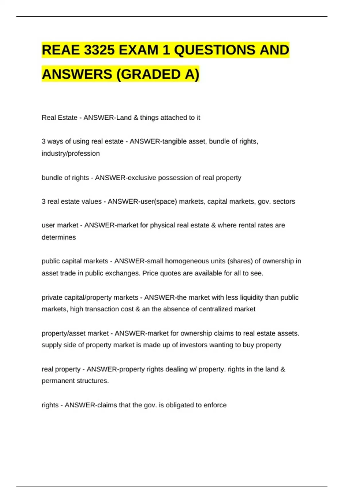 REAE 3325 EXAMS STUDY PACK -(BUNDLE)QUESTIONS AND ANSWERS 100% CORRECT!! REAE 3325 EXAMS STUDY PACK -(BUNDLE)QUESTIONS AND ANSWERS 100% CORRECT!! REAE 3325 EXAMS STUDY PACK -(BUNDLE)QUESTIONS AND ANSWERS 100% CORRECT!! REAE 3325 EXAMS STUDY PACK -(BUNDLE)QUESTIONS AND ANSWERS 100% CORRECT!! REAE 3325 EXAMS STUDY PACK -(BUNDLE)QUESTIONS AND ANSWERS