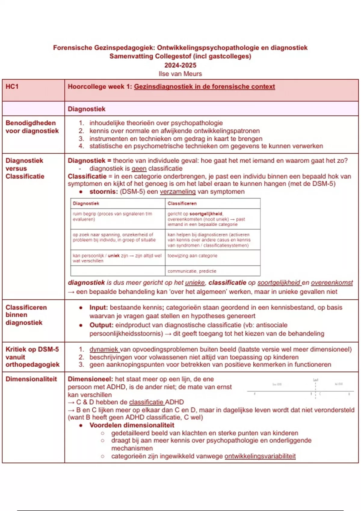 Samenvatting alle stof (Alle Colleges+ Literatuur) Forensische gezinspedagogiek: Ontwikkelingspsychopathologie en diagnostiek