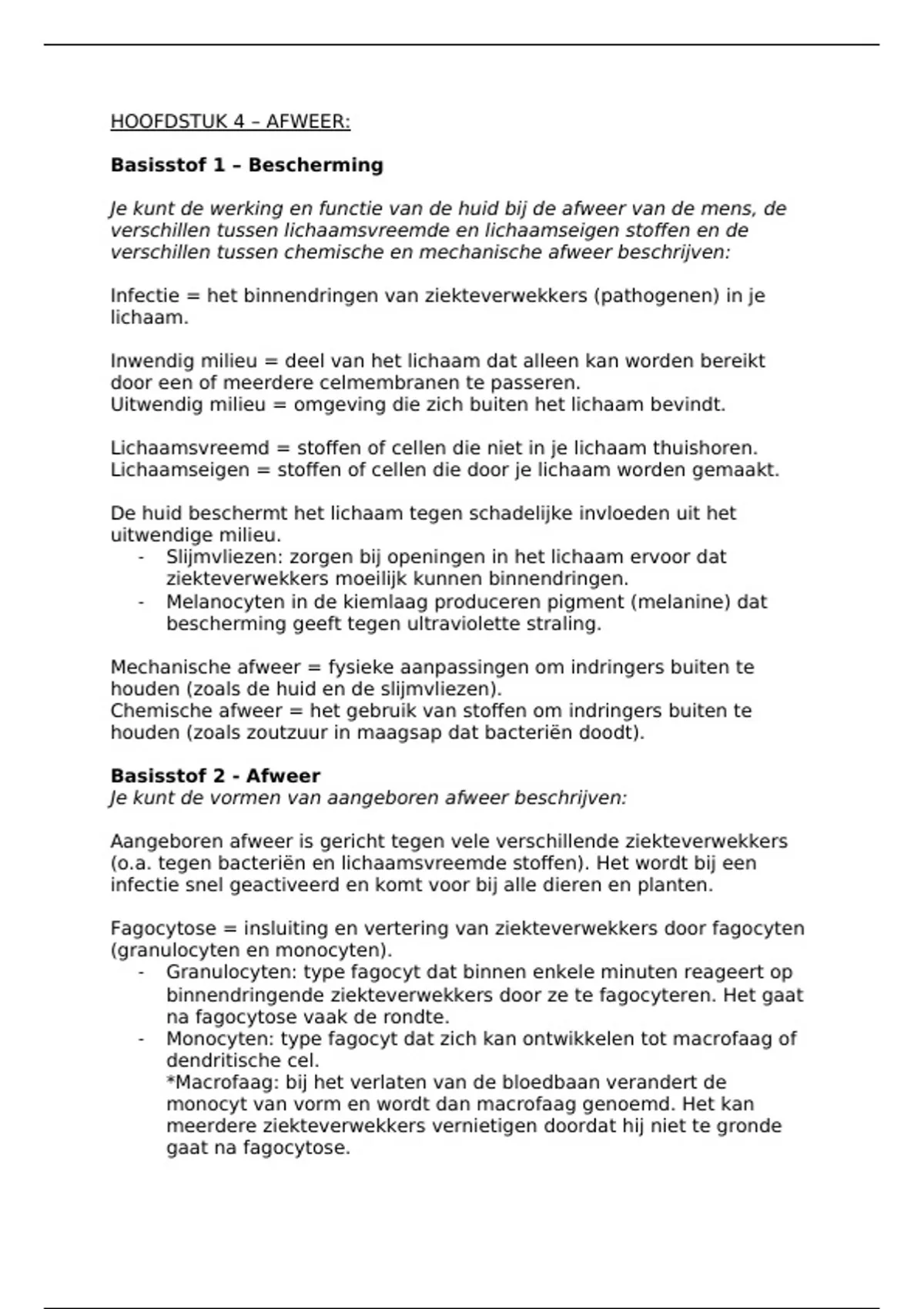 Samenvatting afweer biologie