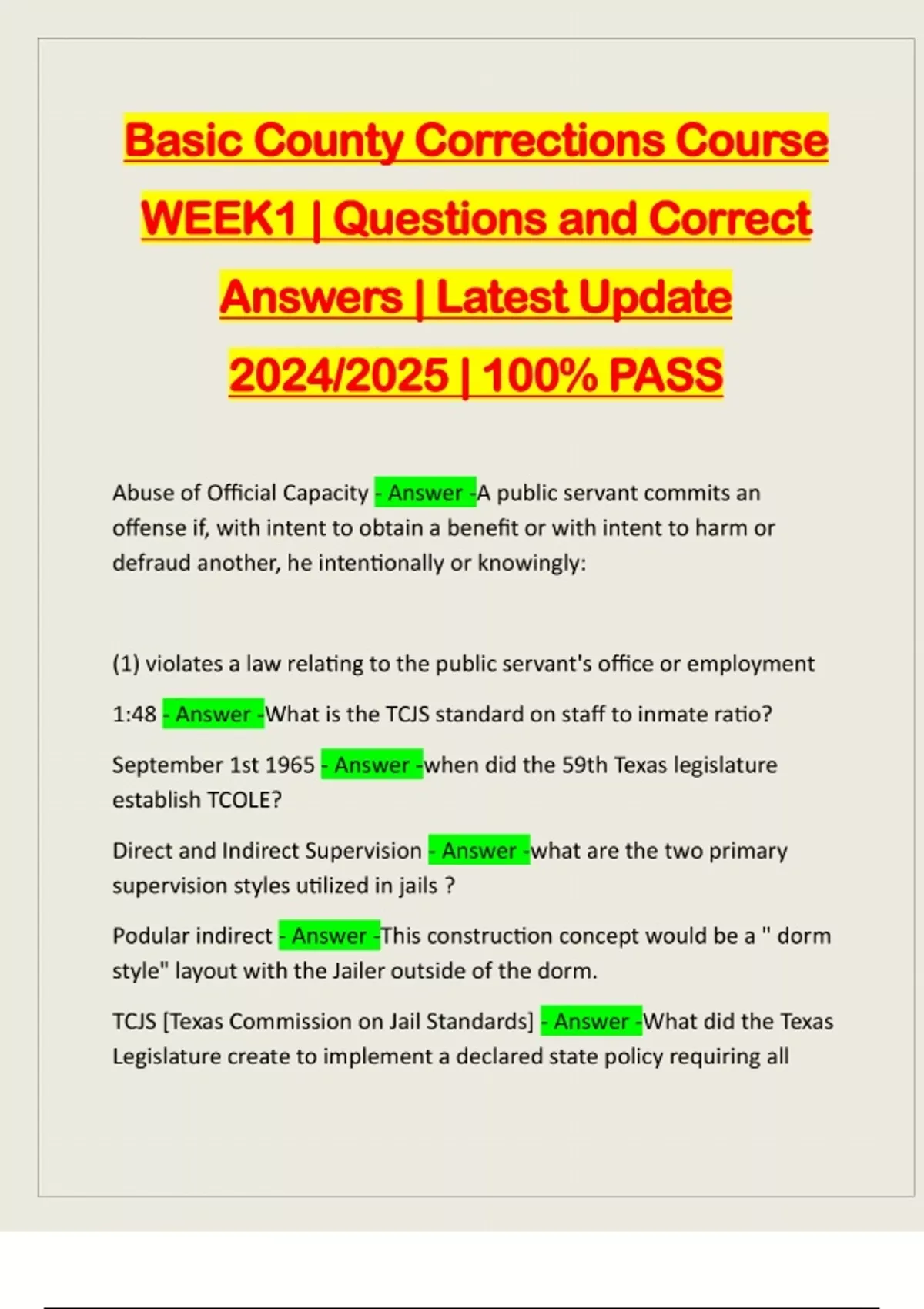 BUNDLE FOR TCOLE JAILER EXAMS:::: QUESTIONS AND CORRECT ANSWERS | LATEST UPDATE 2024/2025