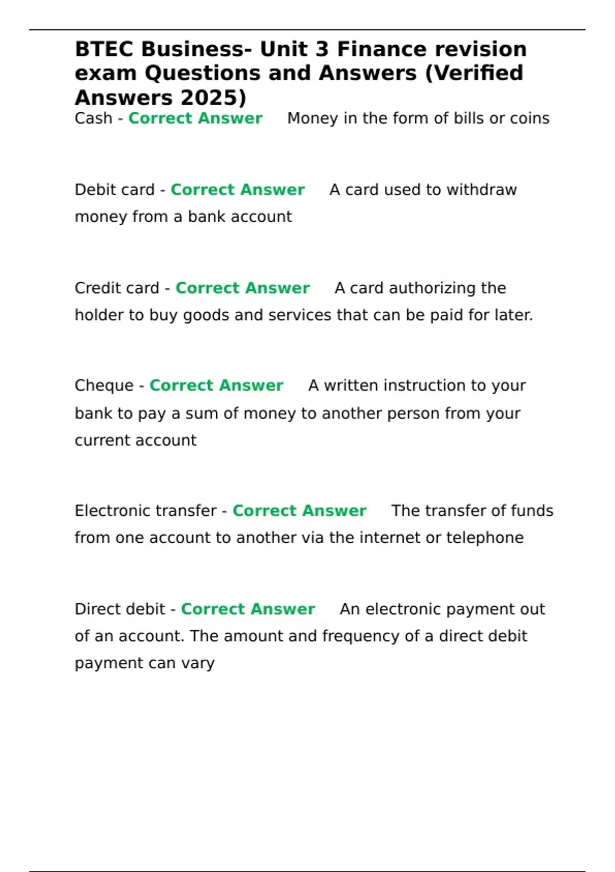 BTEC Business- Unit 3 Finance revision exam Questions and Answers (Latest Update 2025) 2 Exam (elaborations) BTEC Business- Unit 3 Finance revision exam Questions and Answers (Verified Answers 2025) 3 SUMMARY Business Btec Unit 3 - business finance Questions and Answers (Latest Update 2025)