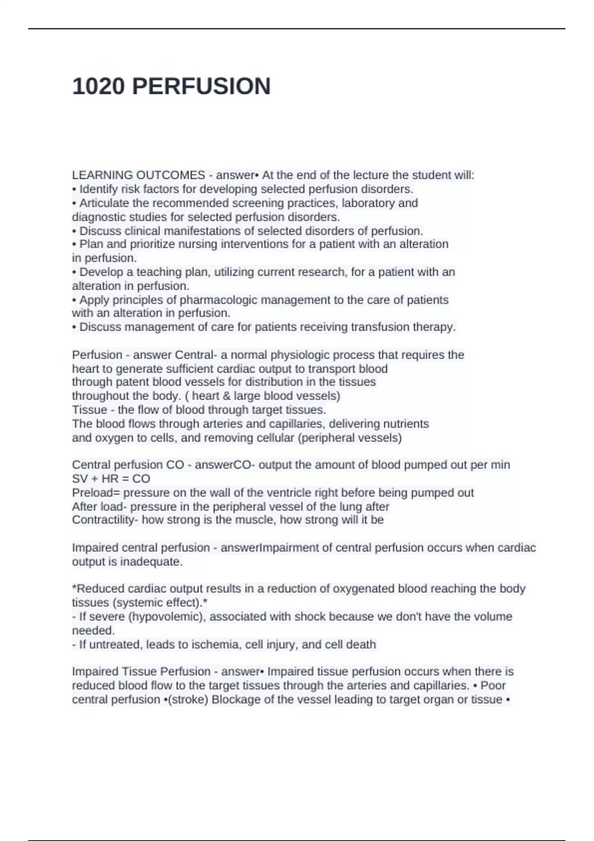 BSNC 1000 - PERFUSION QUESTIONS AND ANSWERS GRADED A+