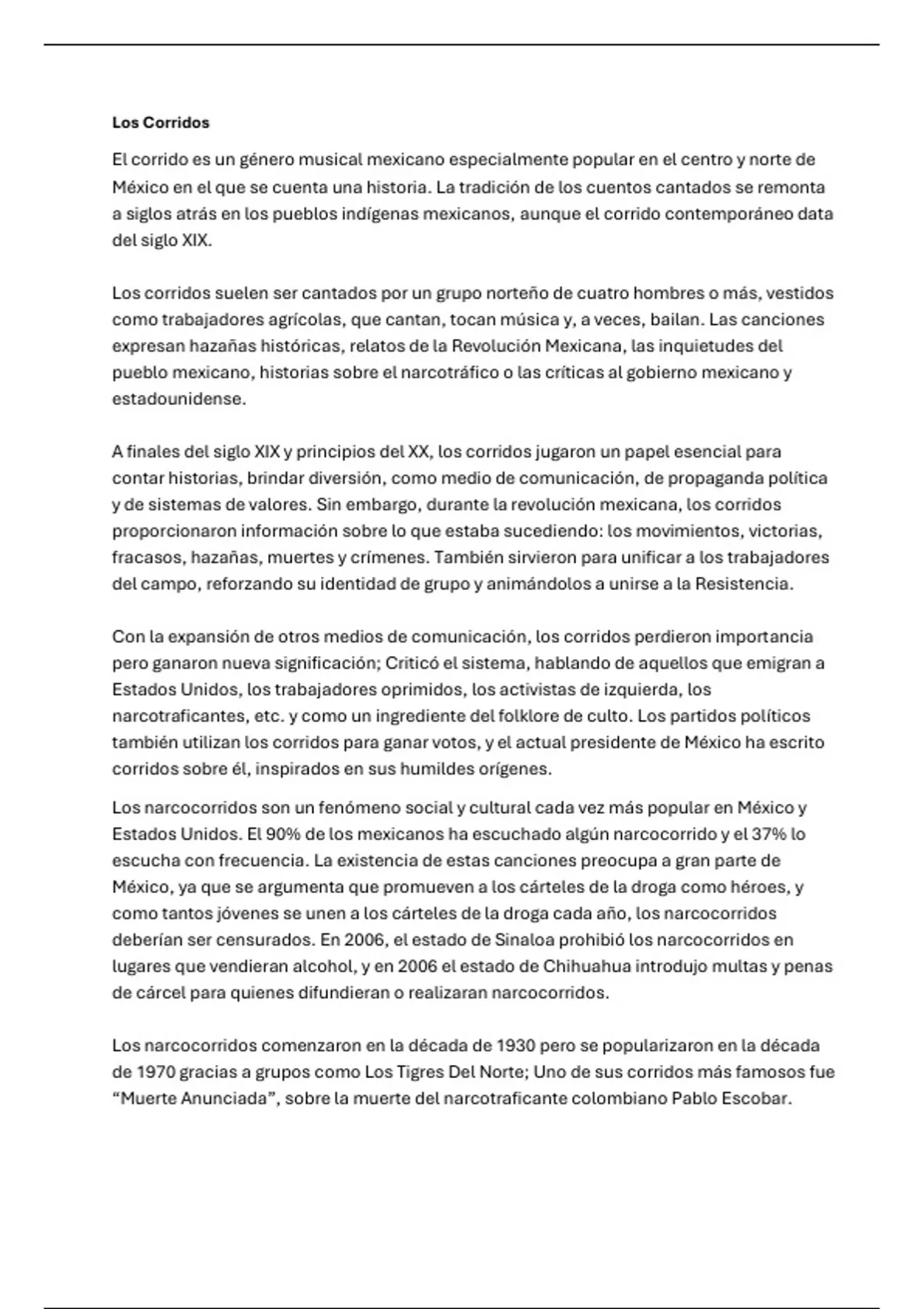 Sumario A-Level Spanish module 4 - La música (español )