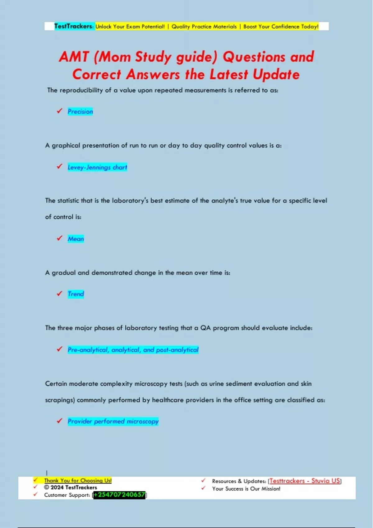 AMT (Mom Study guide) Questions and Correct Answers the Latest Update