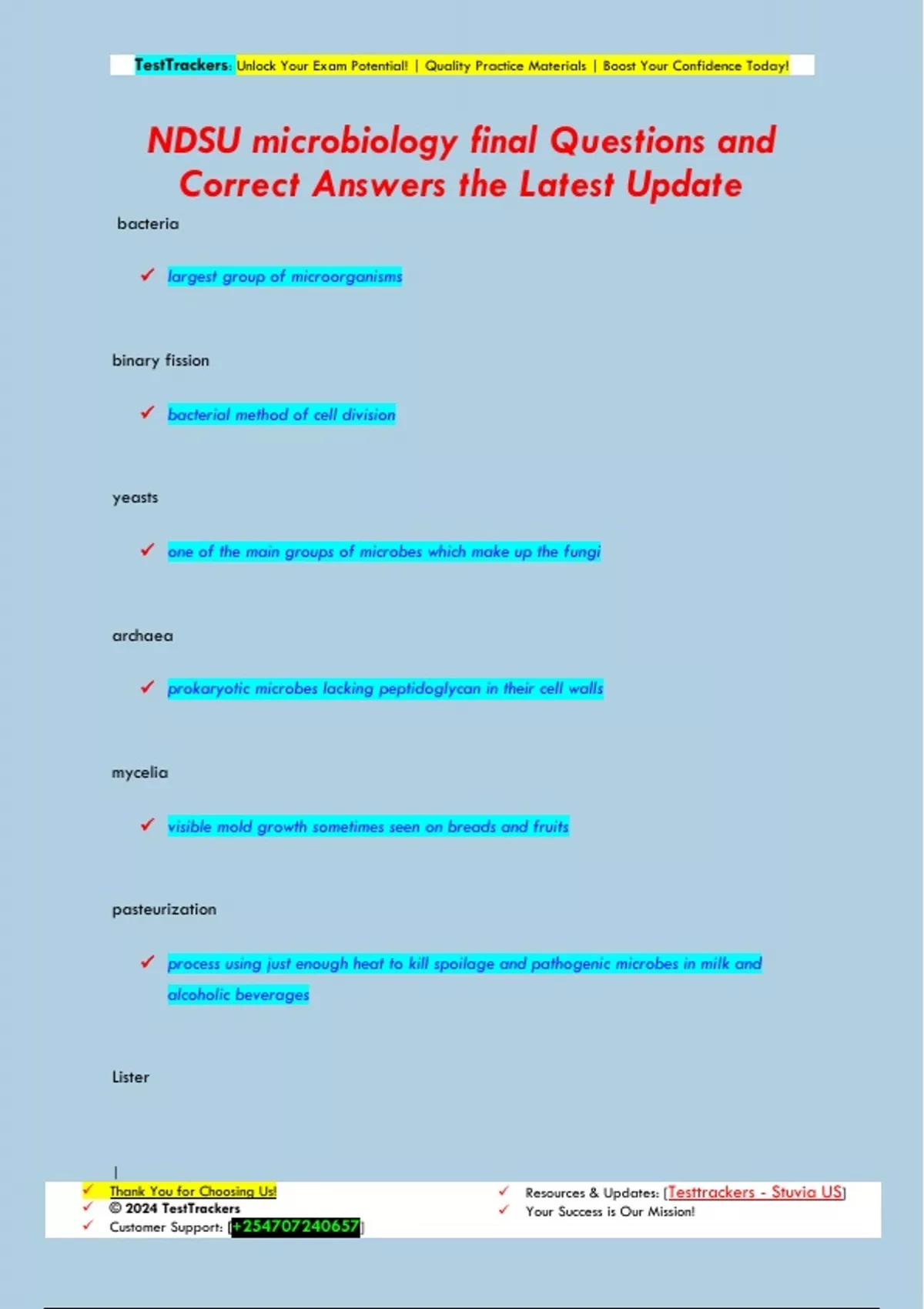 NDSU microbiology Questions and Correct Answers the Latest Update