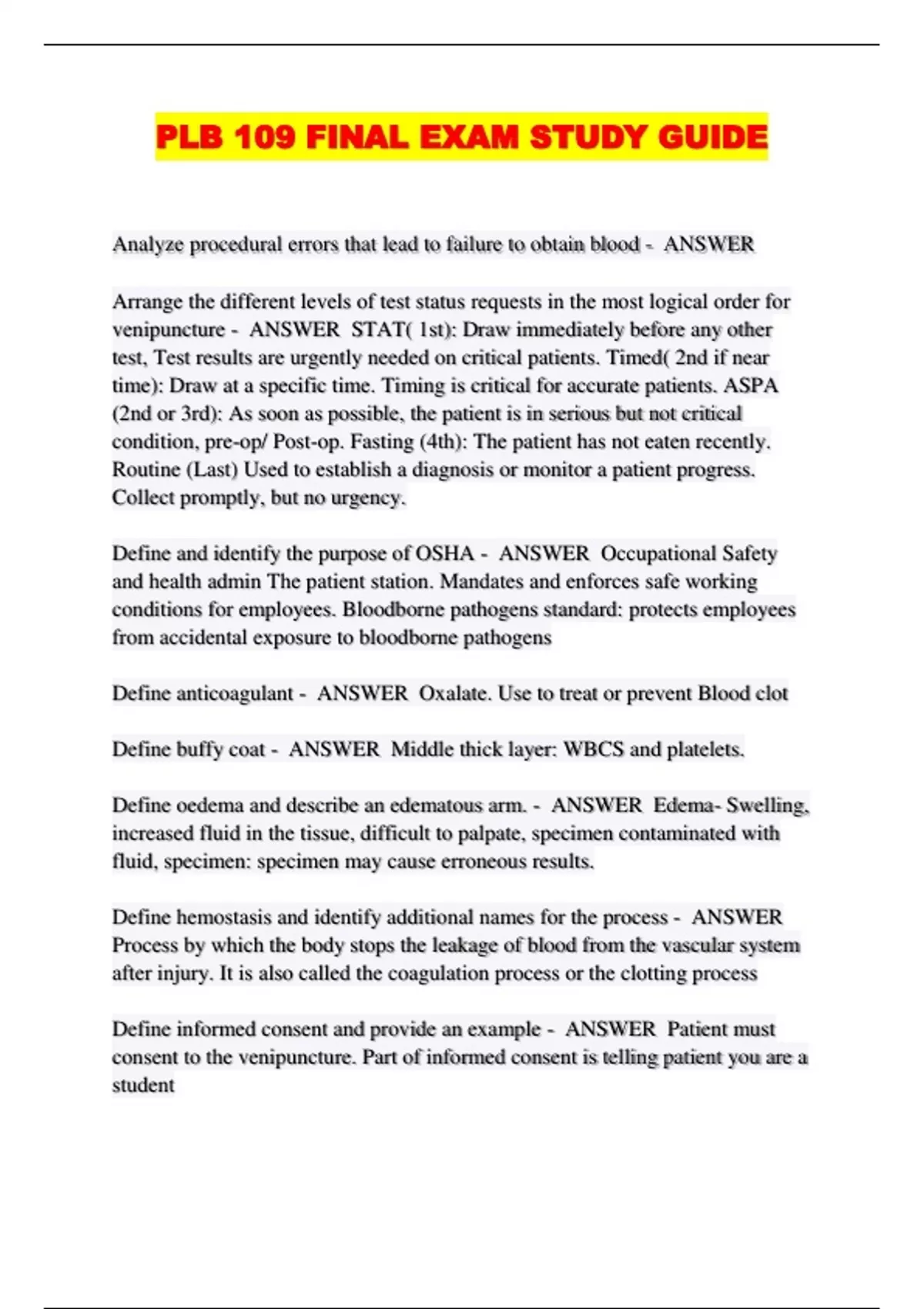PLB109 STUDY GUIDE QUESTIONS AND ANSWERS