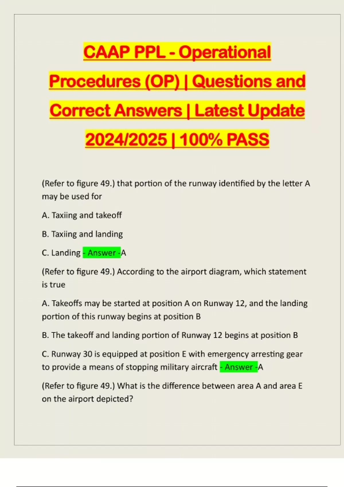 CAAP PPL PACKAGE DEAL EXAMS:::: QUESTIONS AND CORRECT ANSWERS | LATEST UPDATE 2024/2025