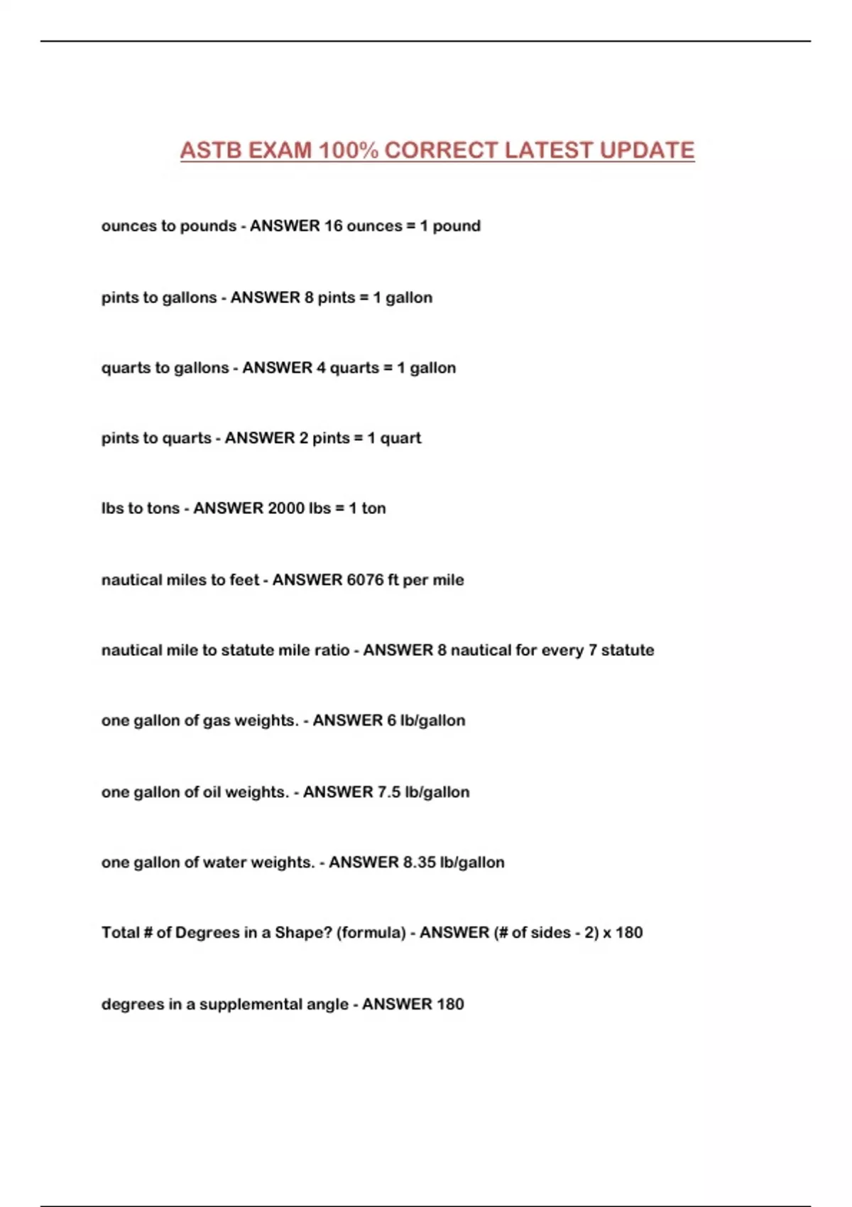 ASTB EXAM 100% CORRECT LATEST UPDATE