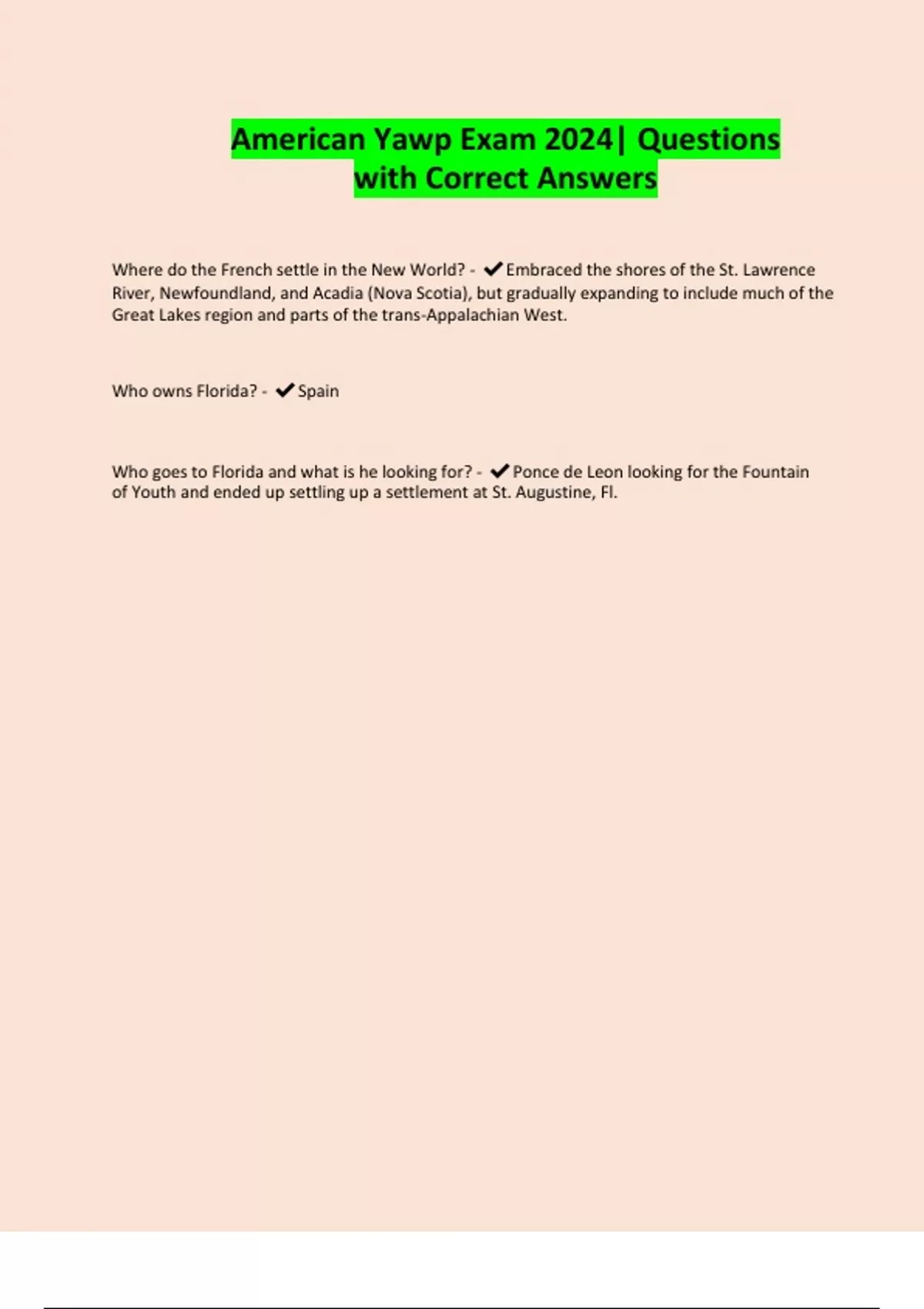 American Yawp Test| Questions Solved 100% Correct