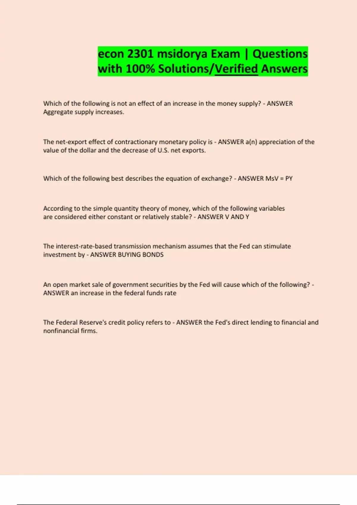 econ 2301 msidorya Exam | Questions with 100% Solutions/Verified Answers