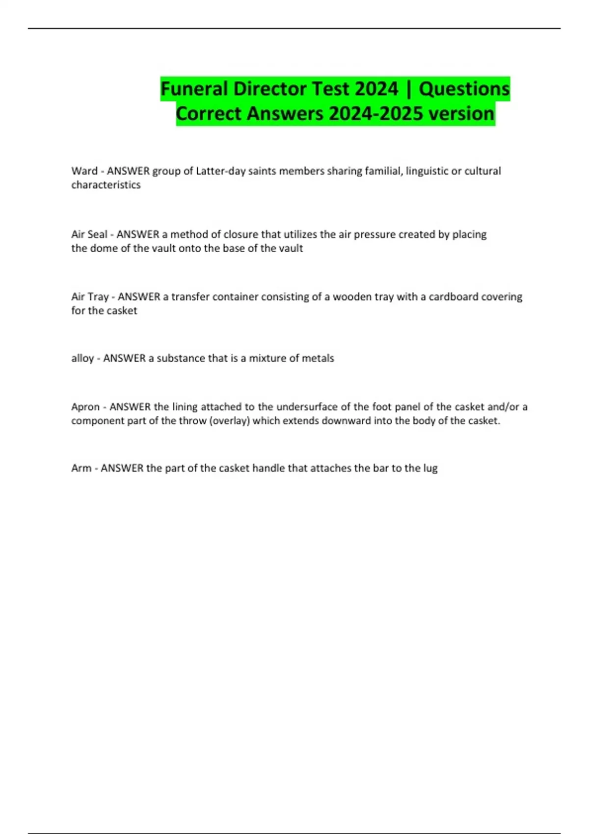 Funeral Director EXAMS BUNDLE All with |Questions & 100% Correct Answers Rated A+