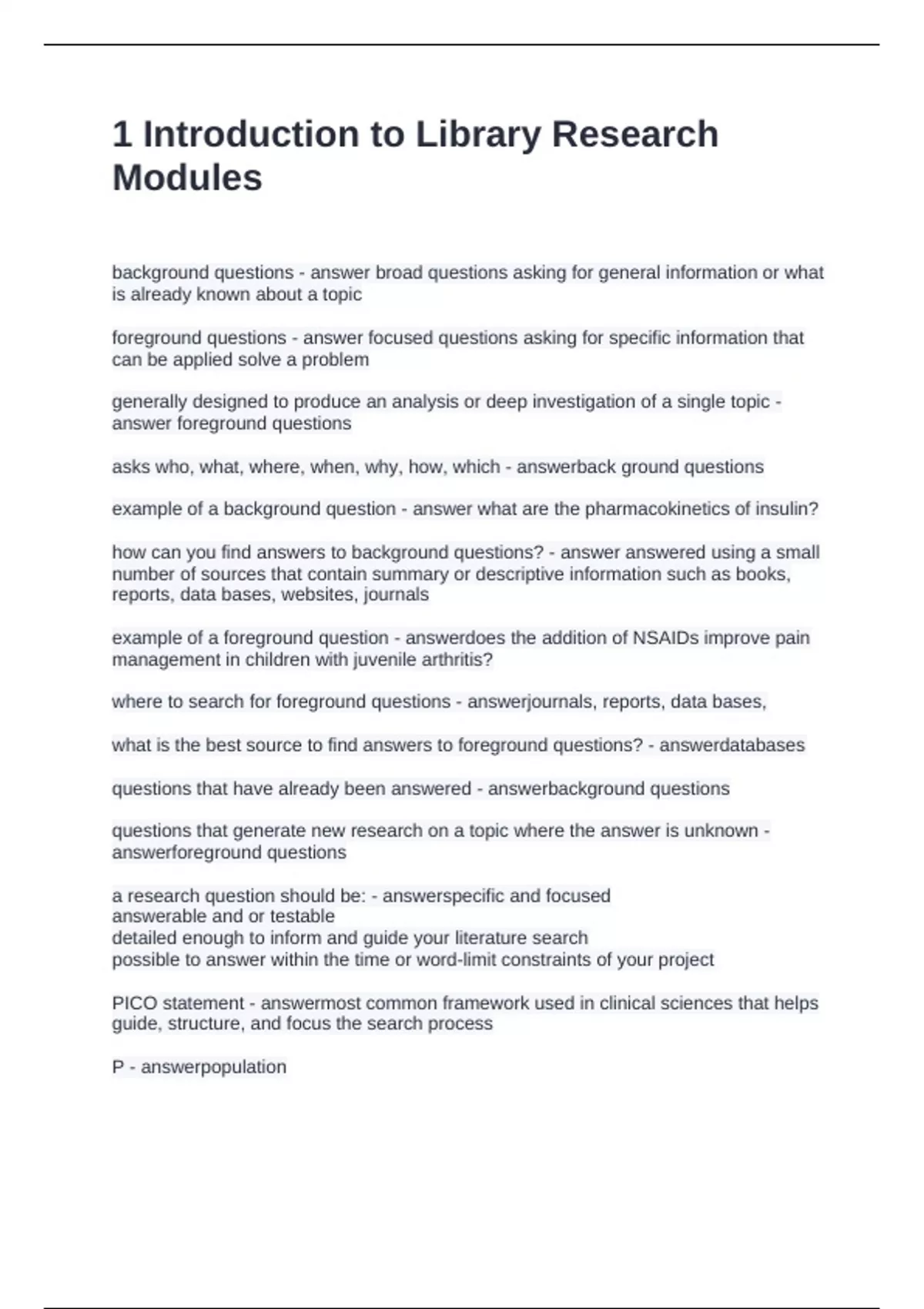 1 Introduction to Library Research Modules Questions and Answers 2024