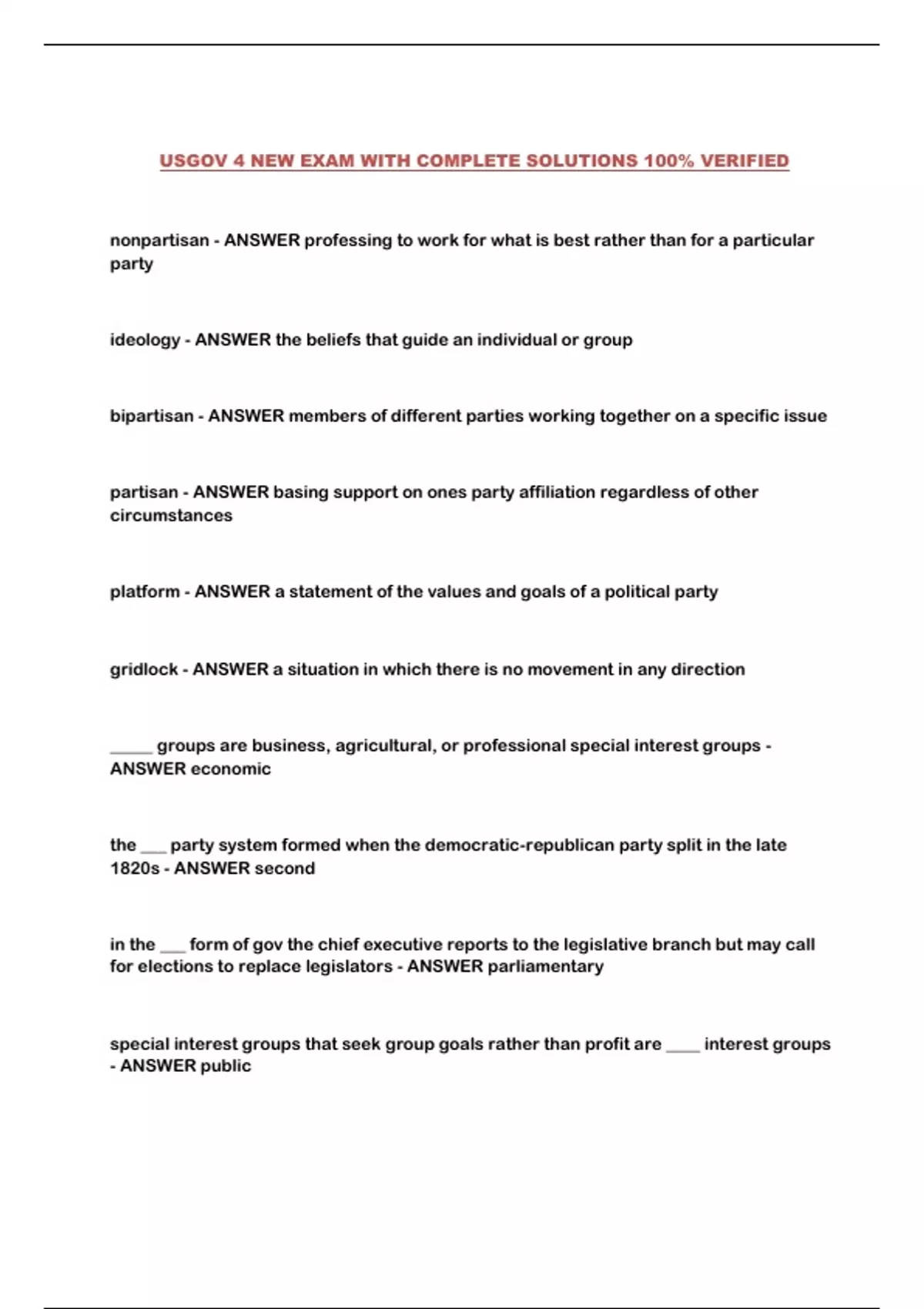 USGOV 4 NEW EXAM WITH COMPLETE SOLUTIONS 100% VERIFIED
