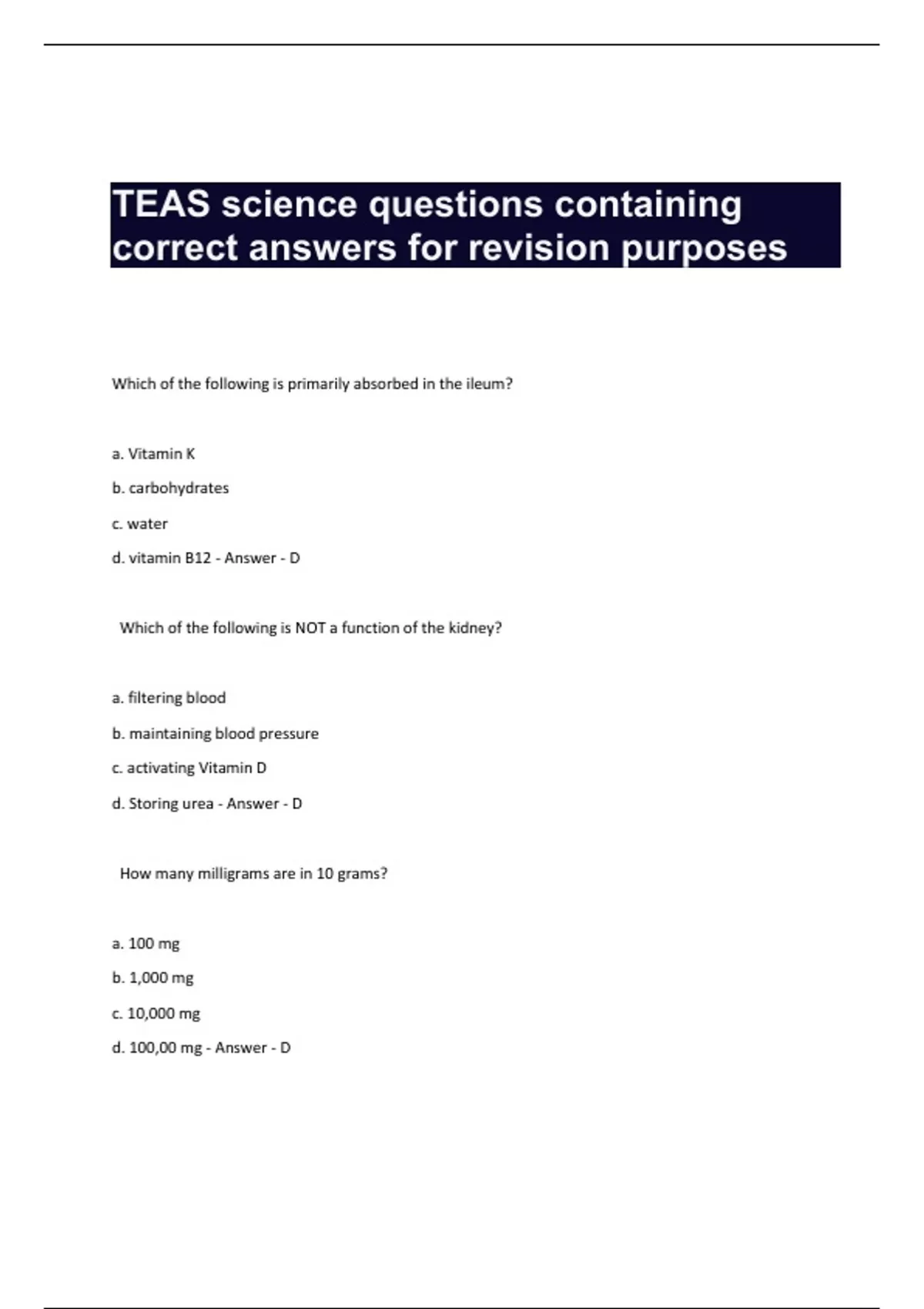 TEAS EXAM STUDY GUIDE WITH QUESTIONS AND CORRECT ANSWERS