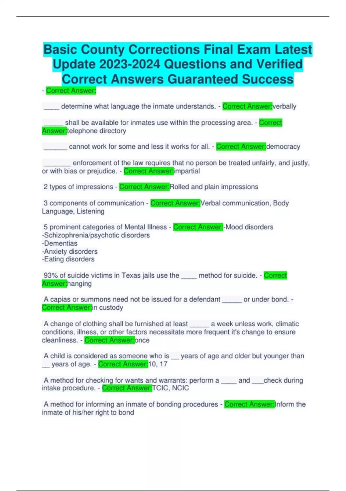 Basic County Corrections EXAM LATEST UPDATE QUESTIONS AND 100% VERIFIED CORRECT ANSWERS 3 versions bundled together