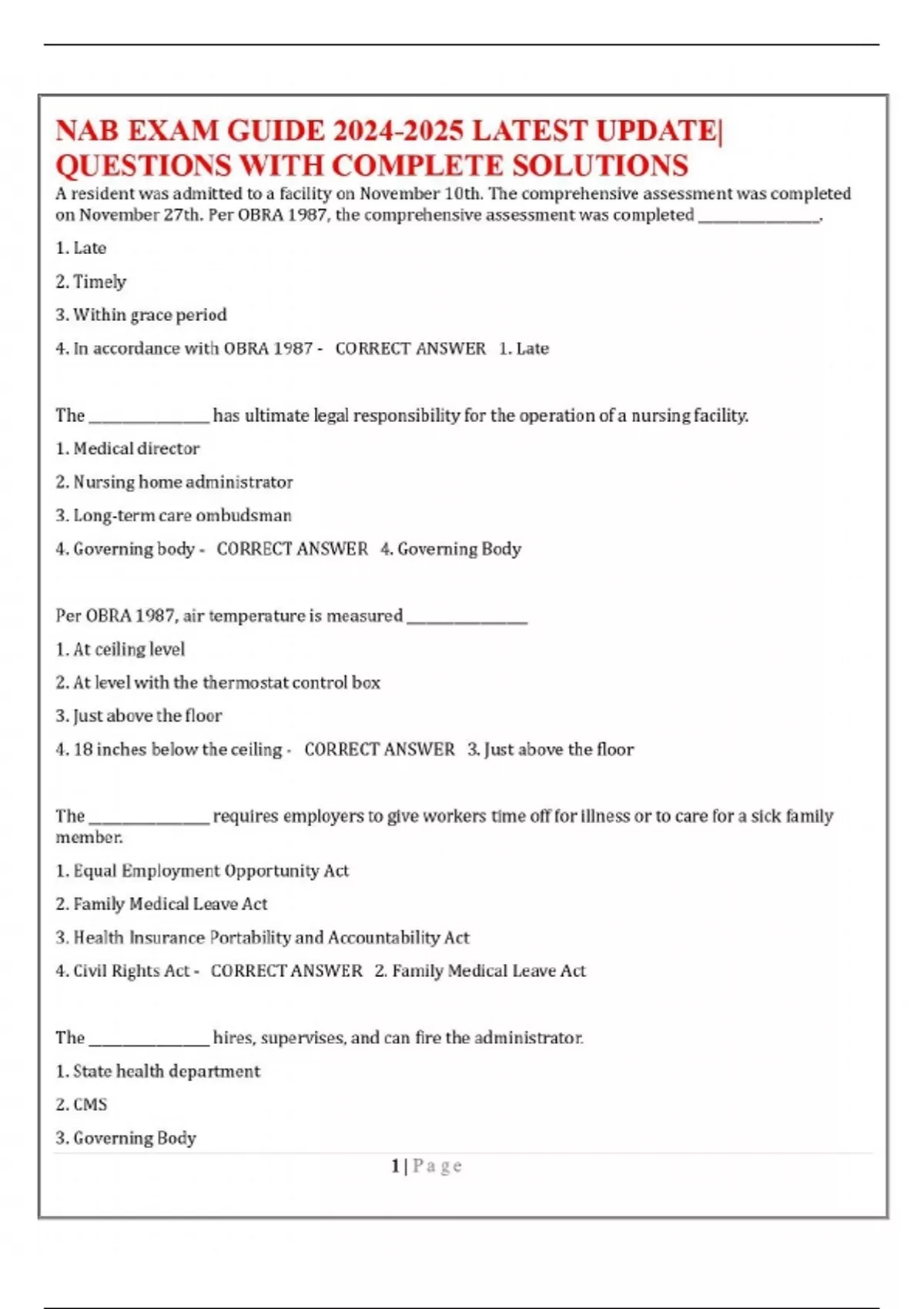 NAB EXAMS BUNDLE// SUCCESS! RCAL - NAB ADMINISTRATOR EXAM (FEDERAL) NAB CORE PRACTICE EXAM 110 SETS LATEST UPDATE NAB PRACTICE EXAM LATEST UPDATE| QUESTIONS WITH COMPLETE SOLUTIONS