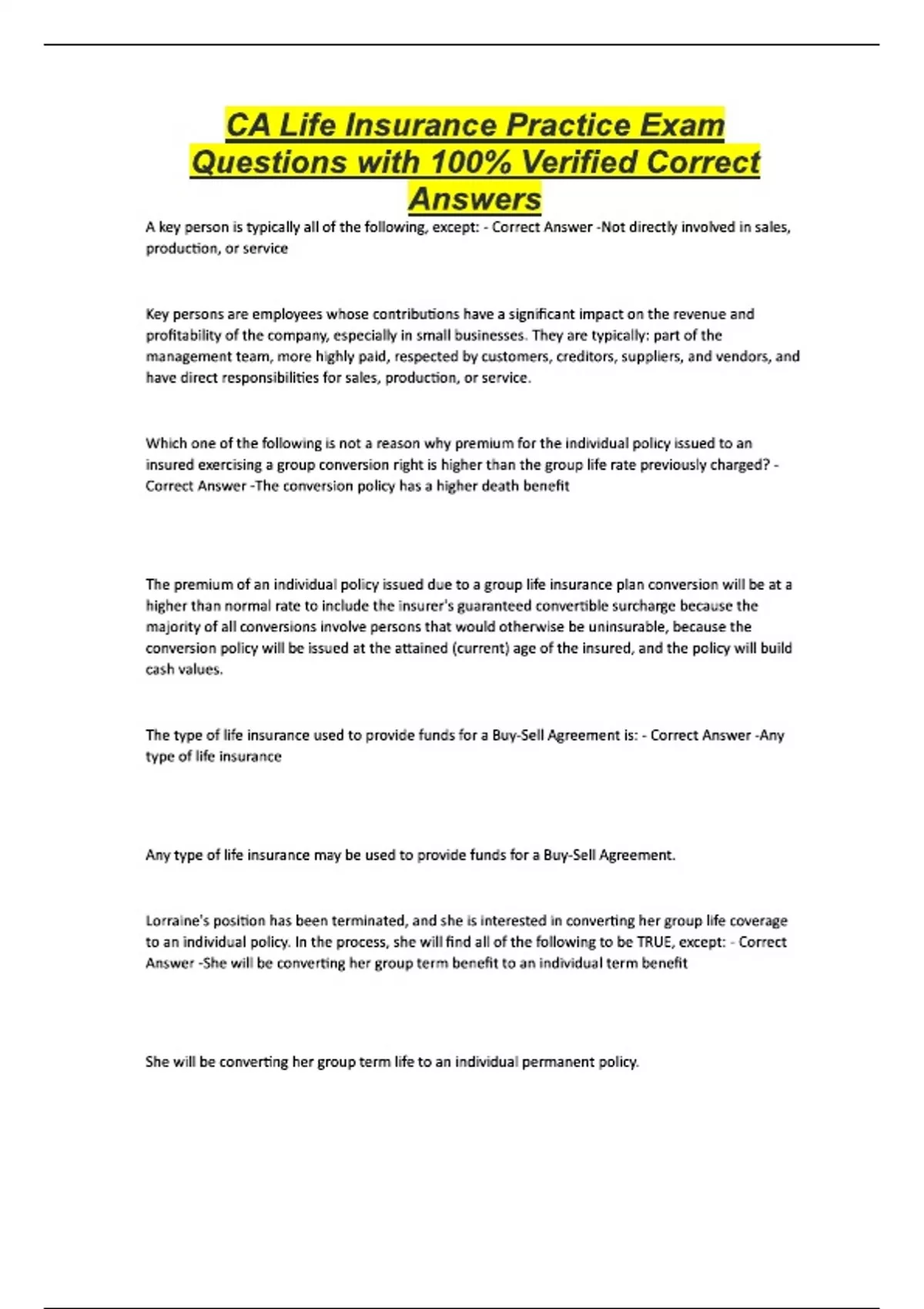 CA LIFE INSURANCE COMPLETE EXAM BUNDLE LATEST UPDATED 2024/2025