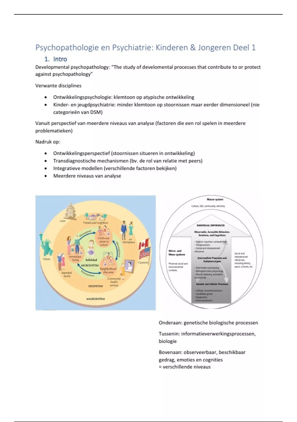 Dit is een volledige uiteenzetting van het vak Psychopathologie en psychiatrie kinderen en jongeren (3e Bachelor Psychologie, KU Leuven). Het is een samensmelting van de powerpoints en mijn persoonlijke notities.