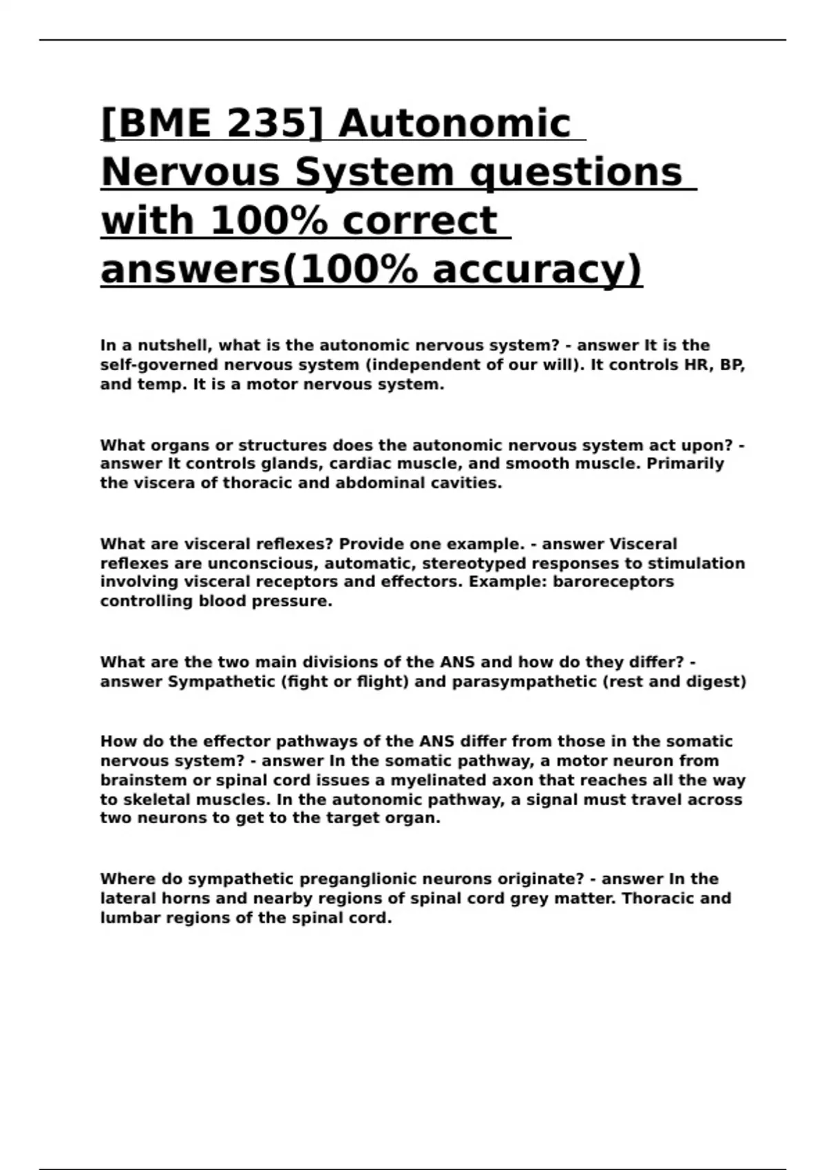 -BME 235- Autonomic Nervous System questions with 100- correct answers(100- accuracy).