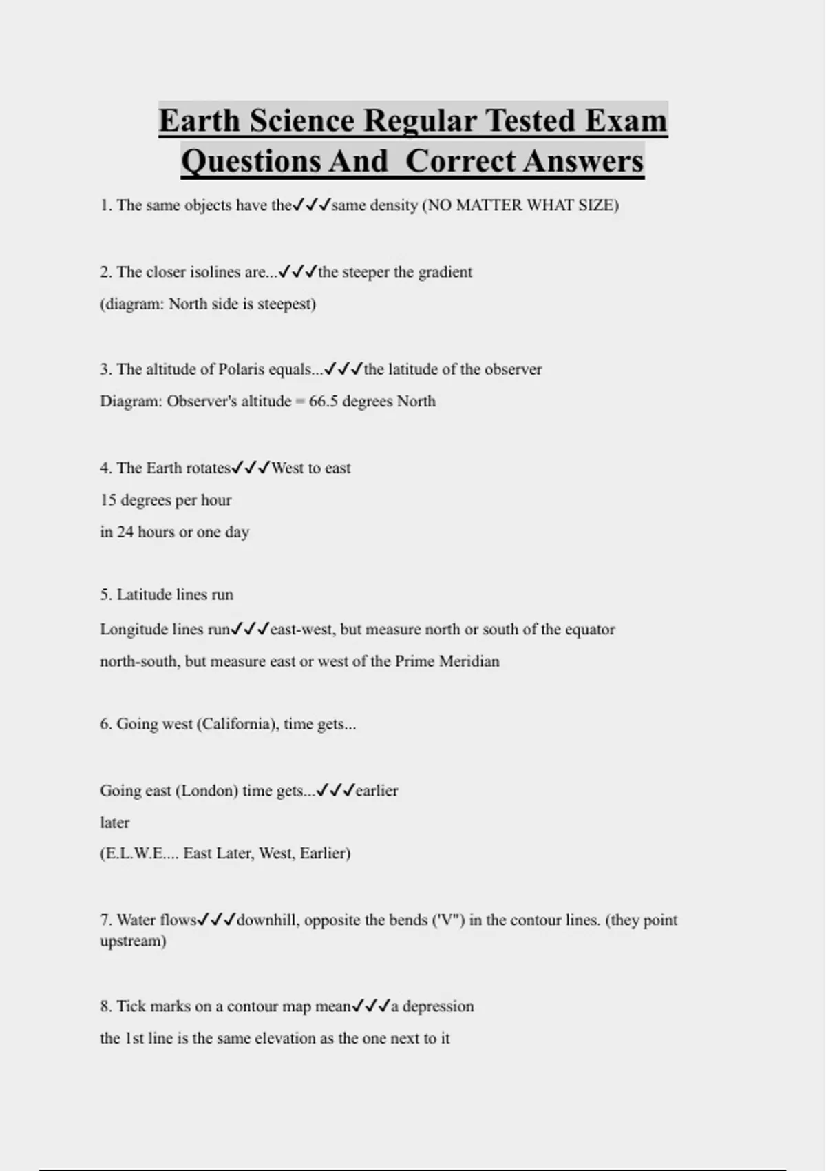 Earth Science Bundled Exam Questions and CORRECT Answers