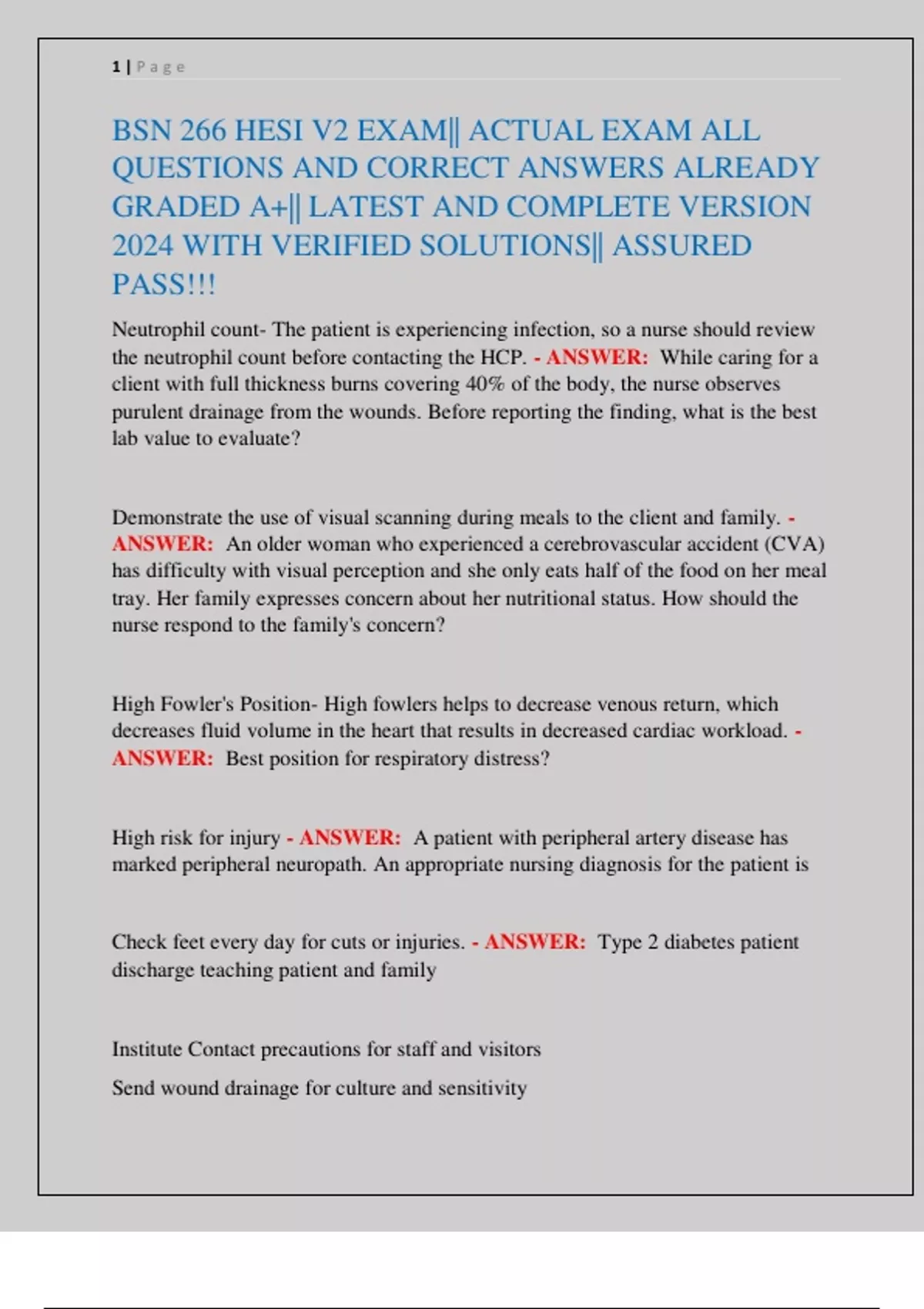 BSN 266 HESI V2 EXAM|| MED/SURG HESI BSN266 YBG1 EXAM|| MED SURG HESI BSN 266 EXAM 1&2|| BSN 266 HESI EXAM|| LATELY UPDATED EXAM ALL QUESTIONS AND 100% CORRECT ANSWERS ALREADY GRADED A+|| LATEST AND COMPLETE UPDATE WITH VERIFIED SOLUTIONS|| ASSU