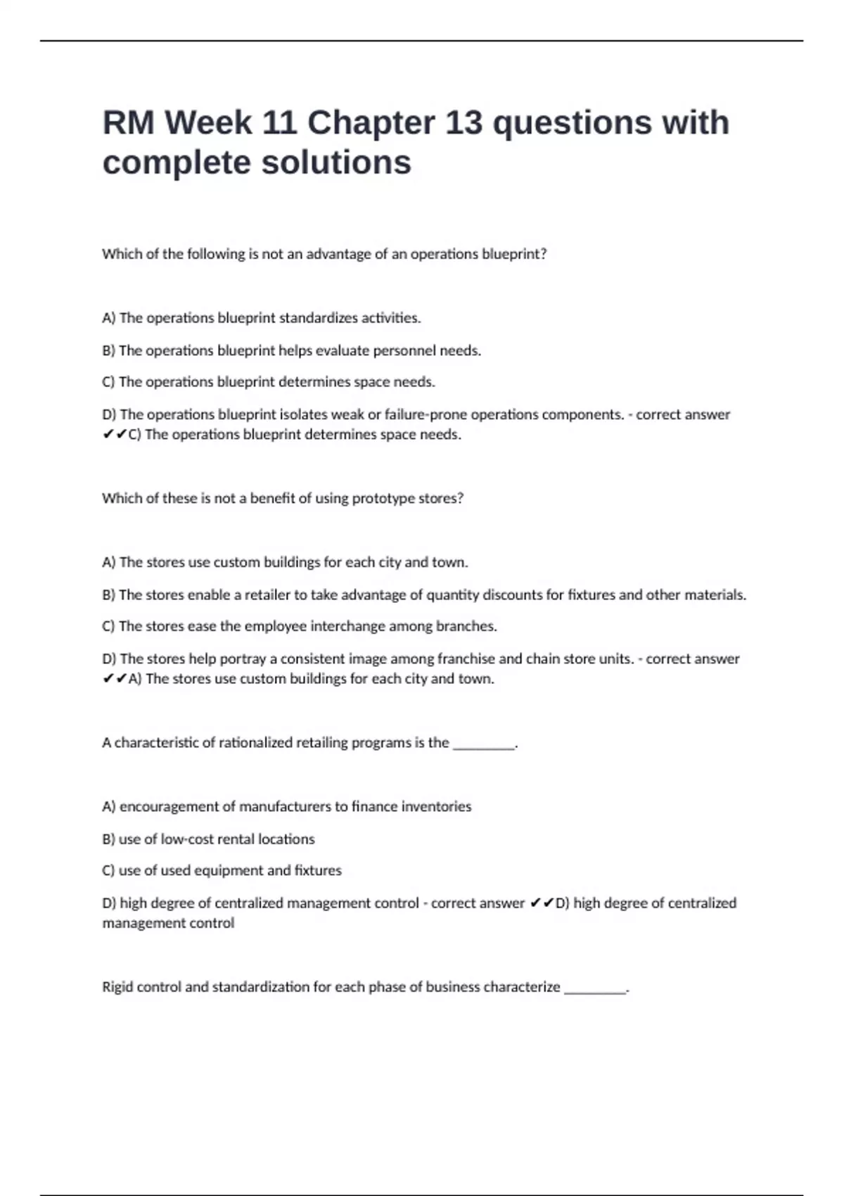 1 Exam (elaborations) RM 320W Exam 1 questions with verified answers 2 Exam (elaborations) RM 360 Final Exam questions with verified solutions already passed 3 Exam (elaborations) RM Exam 2 questions with verified answers 4 Exam (elaborations) RM 450 EXAM 1 questions with verified solutions 5 Exam (elaborations) RM 405 Exam 1 questions with cor
