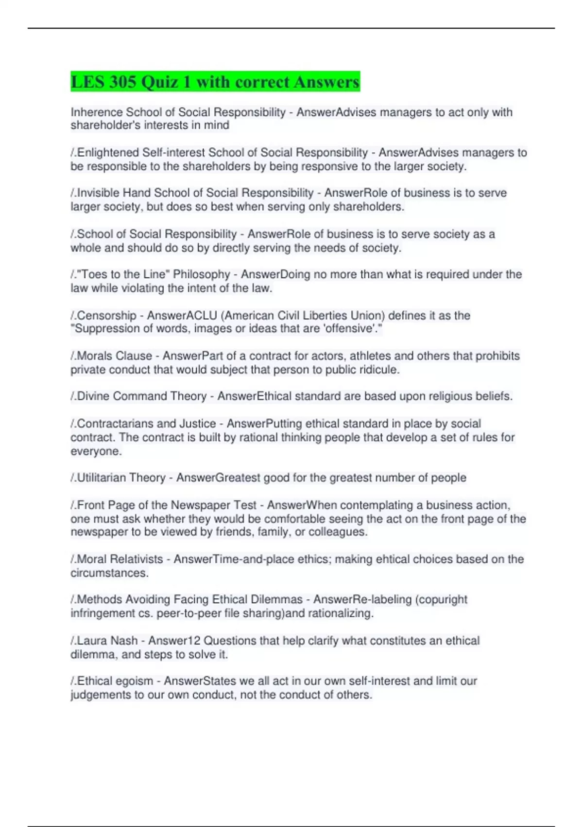 1 Exam (elaborations) LES 305 Quiz 1 with correct Answers 2 Exam (elaborations) LES 305 Exam #4 Questions And Answers 3 Exam (elaborations) LES 305 Exam 3 (Employment Law) Questions and Answers 4 Exam (elaborations) LES 305 Exam 2 Chapter 5 Questions With Correct Answers 5 Exam (elaborations) LES 305 Exam 1-Vocab Questions with correct Answers