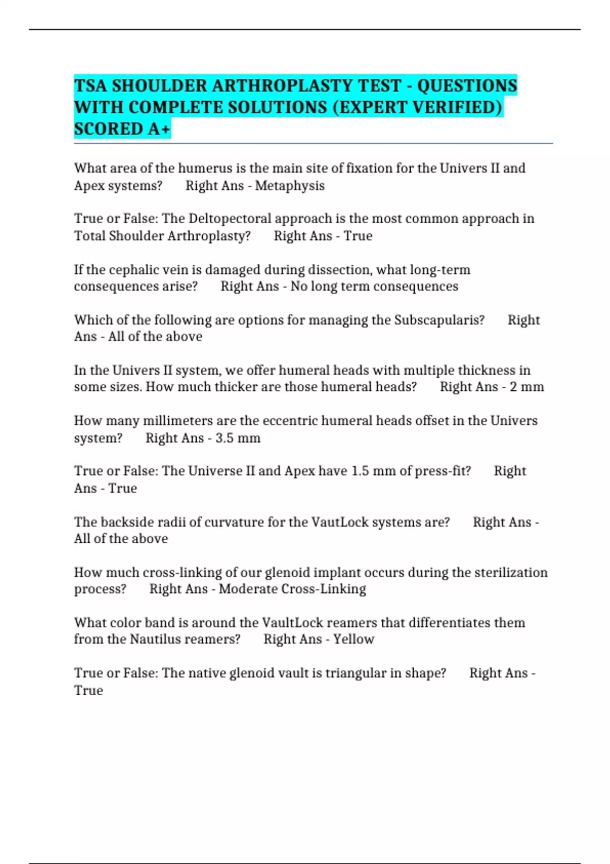 BUNDLE::- ARTHROPLASTY EXAMS (PERFECTLY ORGANIZED TO BOOST YOUR GRADES)