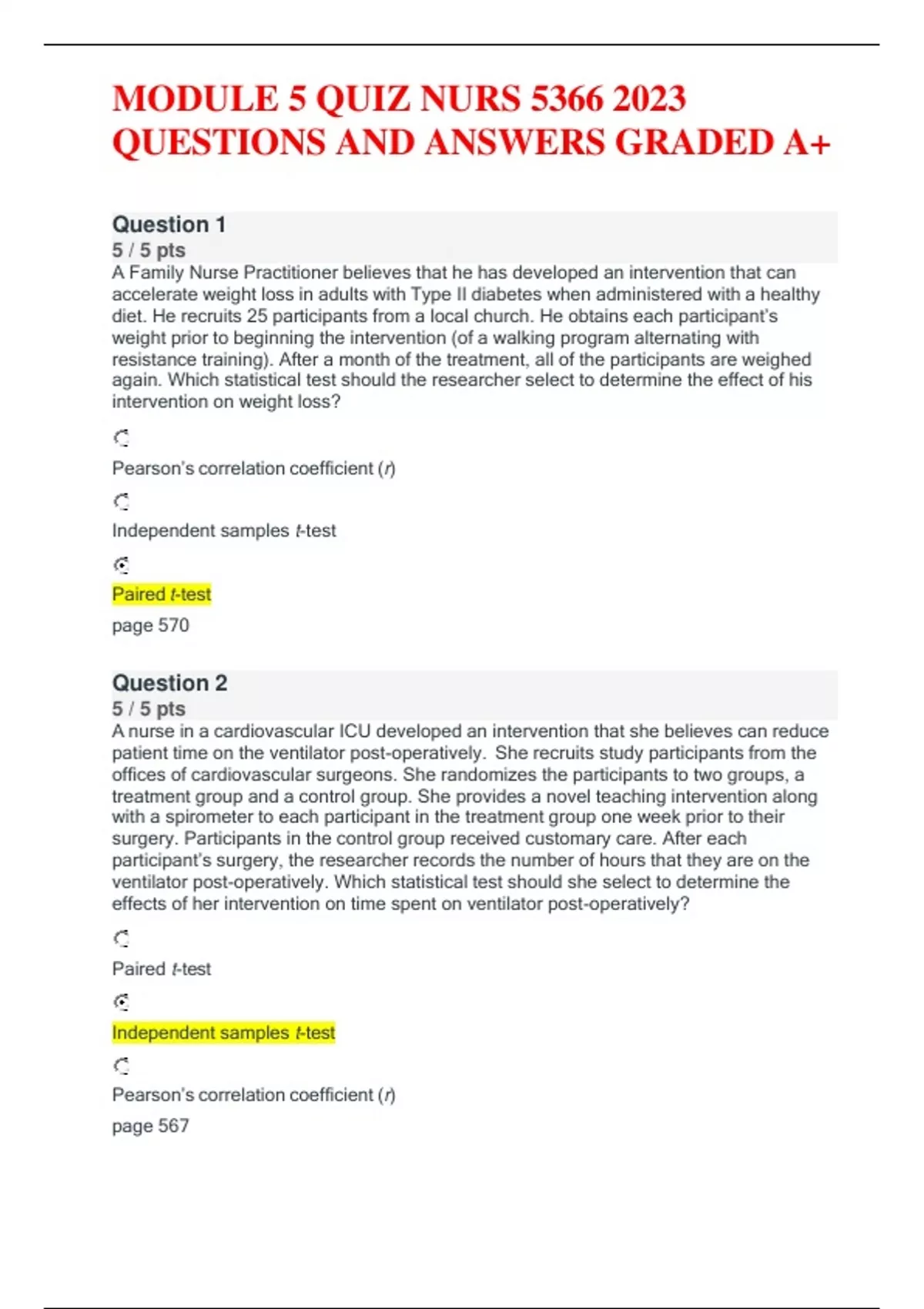 NURS 5366 Module 2 Quiz (REAL EXAM) 2024/2025 LATEST UPDATE LATEST NURS-5366 MODULE 1 QUIZ 2024/2025 UPDATE NURS-5366 MODULE 3 QUIZ: PRINC OF RESEARCH IN NURSING UPDATE UPDATED 2024/2025 MODULE 5 QUIZ NURS 5366 QUESTIONS AND ANSWERS GRADED A