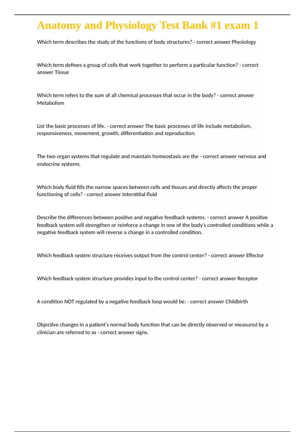 Anatomy & Physiology Bio 168 Chapter 1 exam questions with well verified answers Anatomy and Physiology Test Bank #1 exam 1 questions and answers 100% correct Anatomy and Physiology Unit 5 Practice Test exam questions and verified correct answers