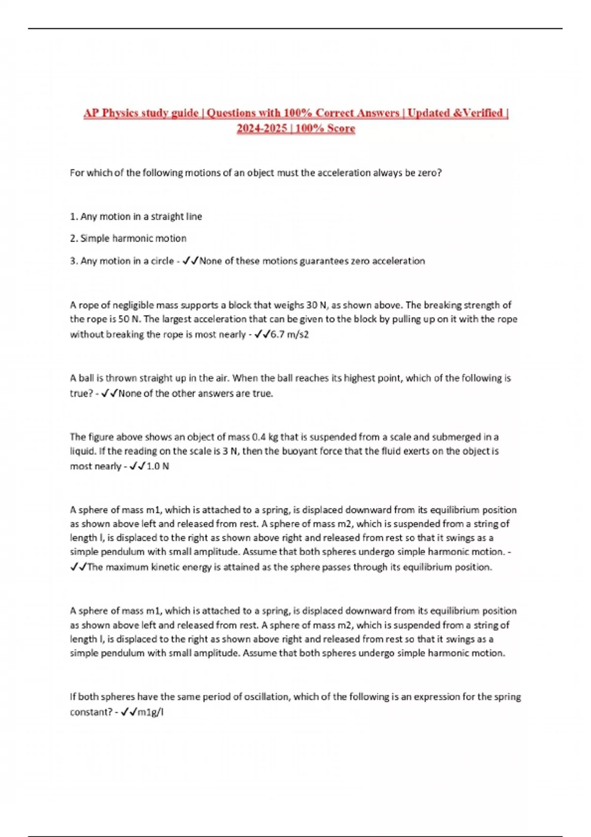Package deal:::AP Physics Exams Compilation 2024/2025 with complete solutions