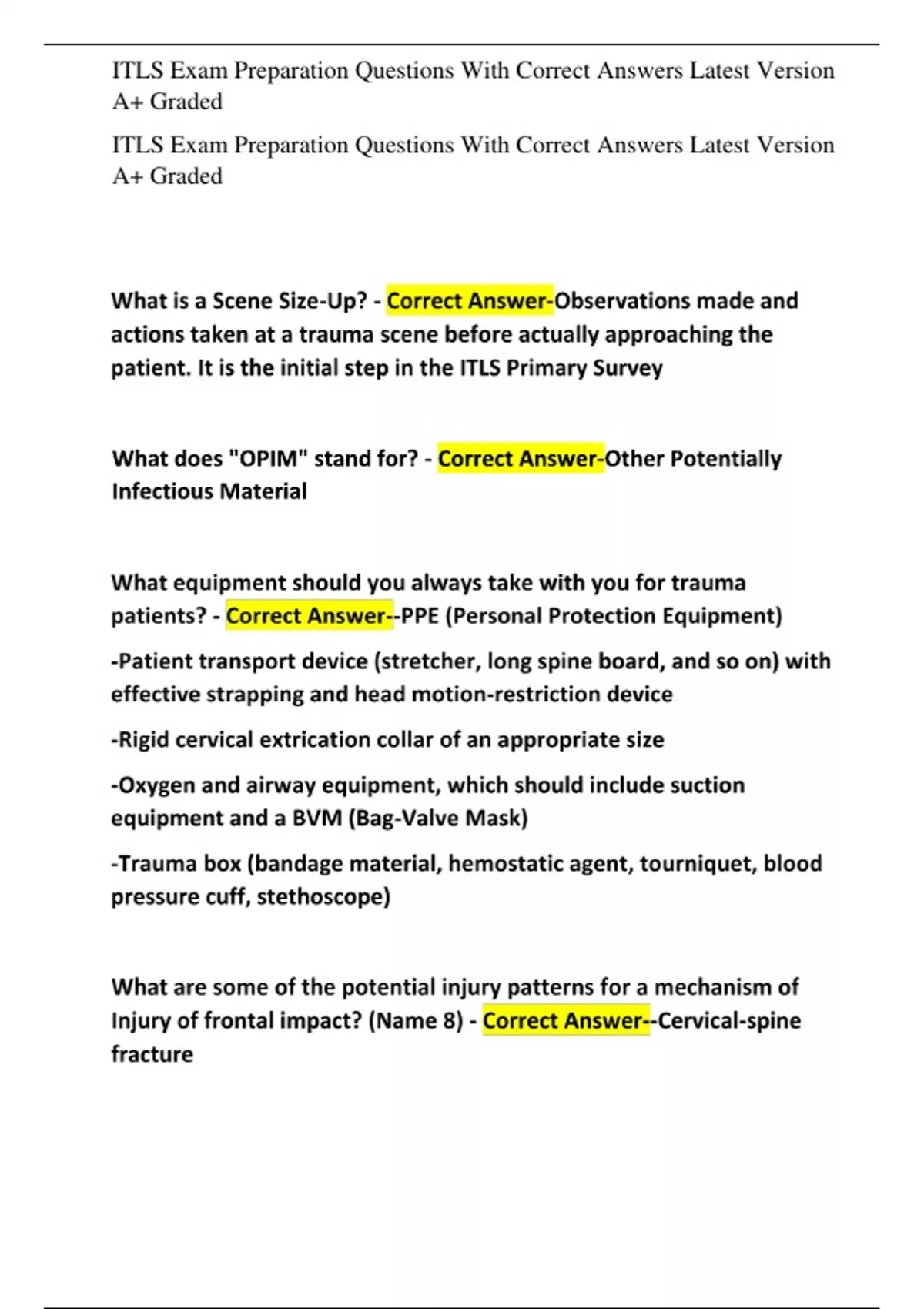 ITLS Test Questions With Correct Answers Latest Version A+ Graded