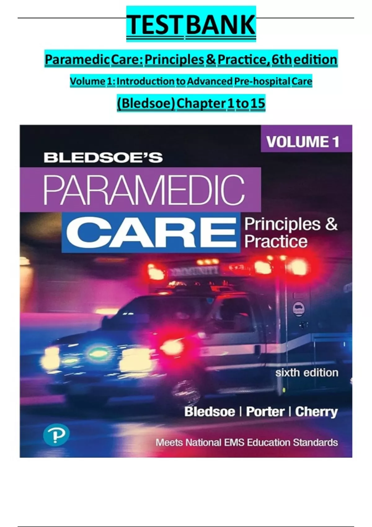 TEST BANK FOR Paramedic Care: Principles & Practice, all 5 Volumes 5th Edition by Bryan Bledsoe, Robert Porter & Richard Cherry , ISBN: 9780134572031 |All Chapters Verified| Guide A+ PACKAGE DEAL