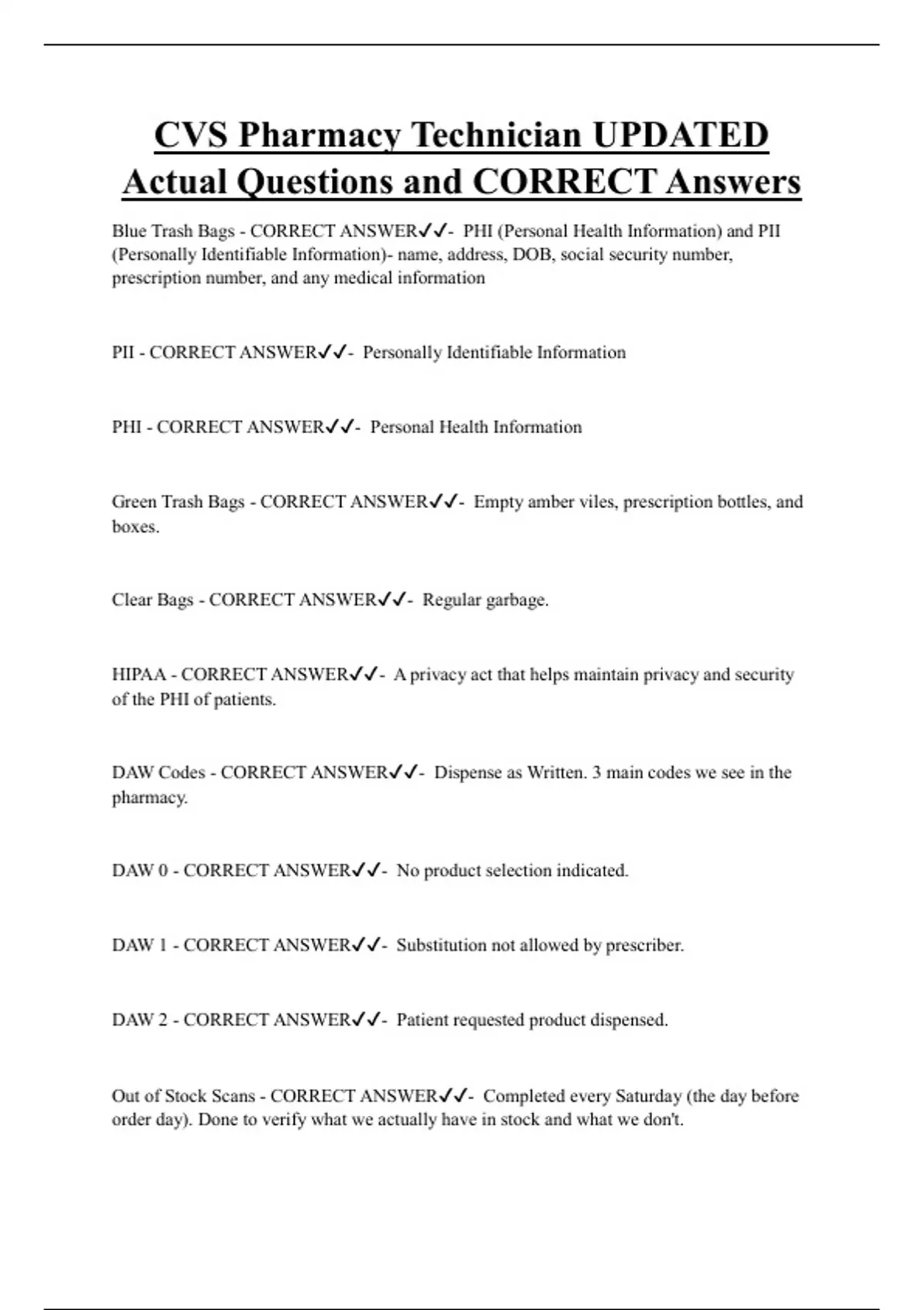 CVS Pharmacy Technician UPDATED Actual Questions and CORRECT Answers