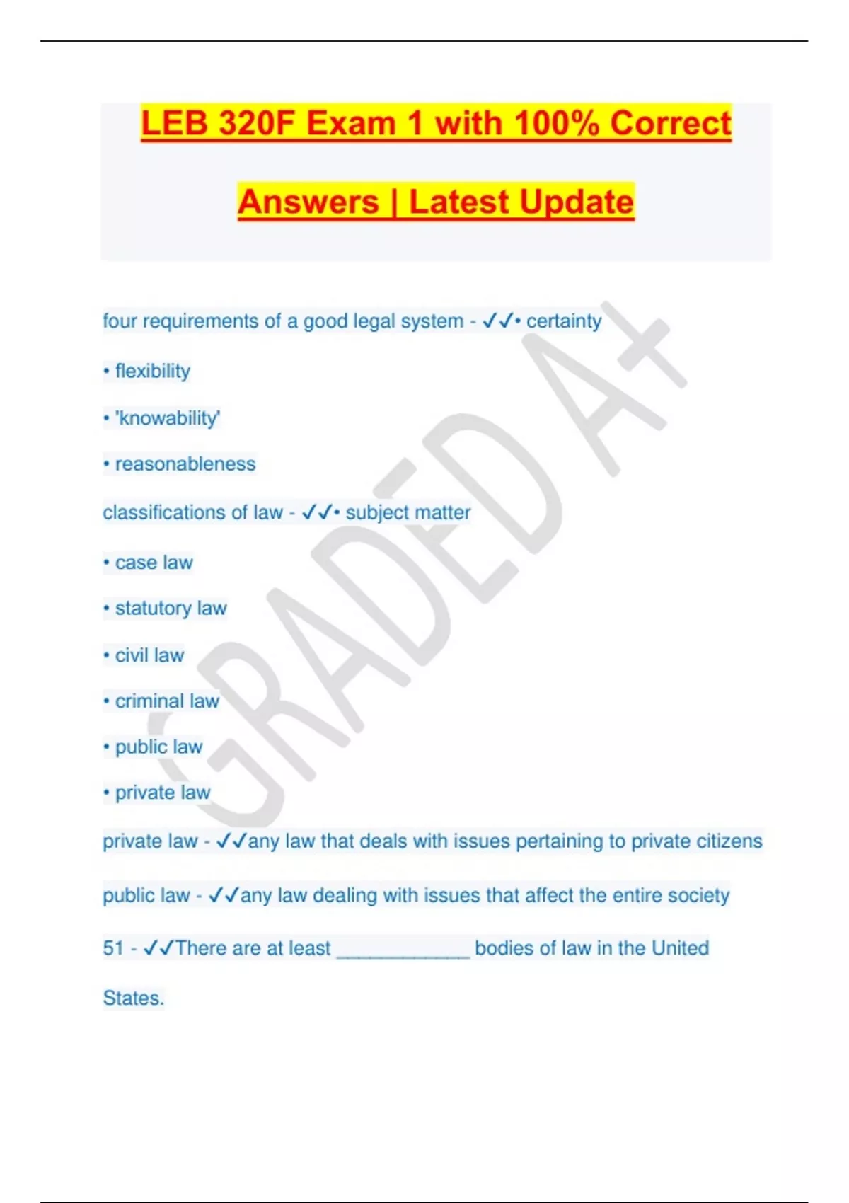 LEB 320F All Exam Questions and Answers 100% Solved | Graded A+
