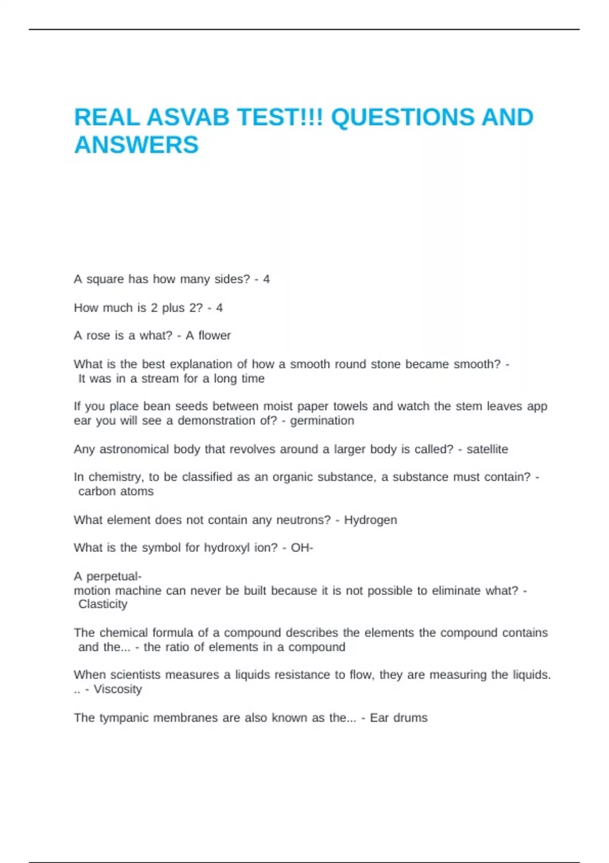 REAL ASVAB TEST!!! QUESTIONS AND ANSWERS